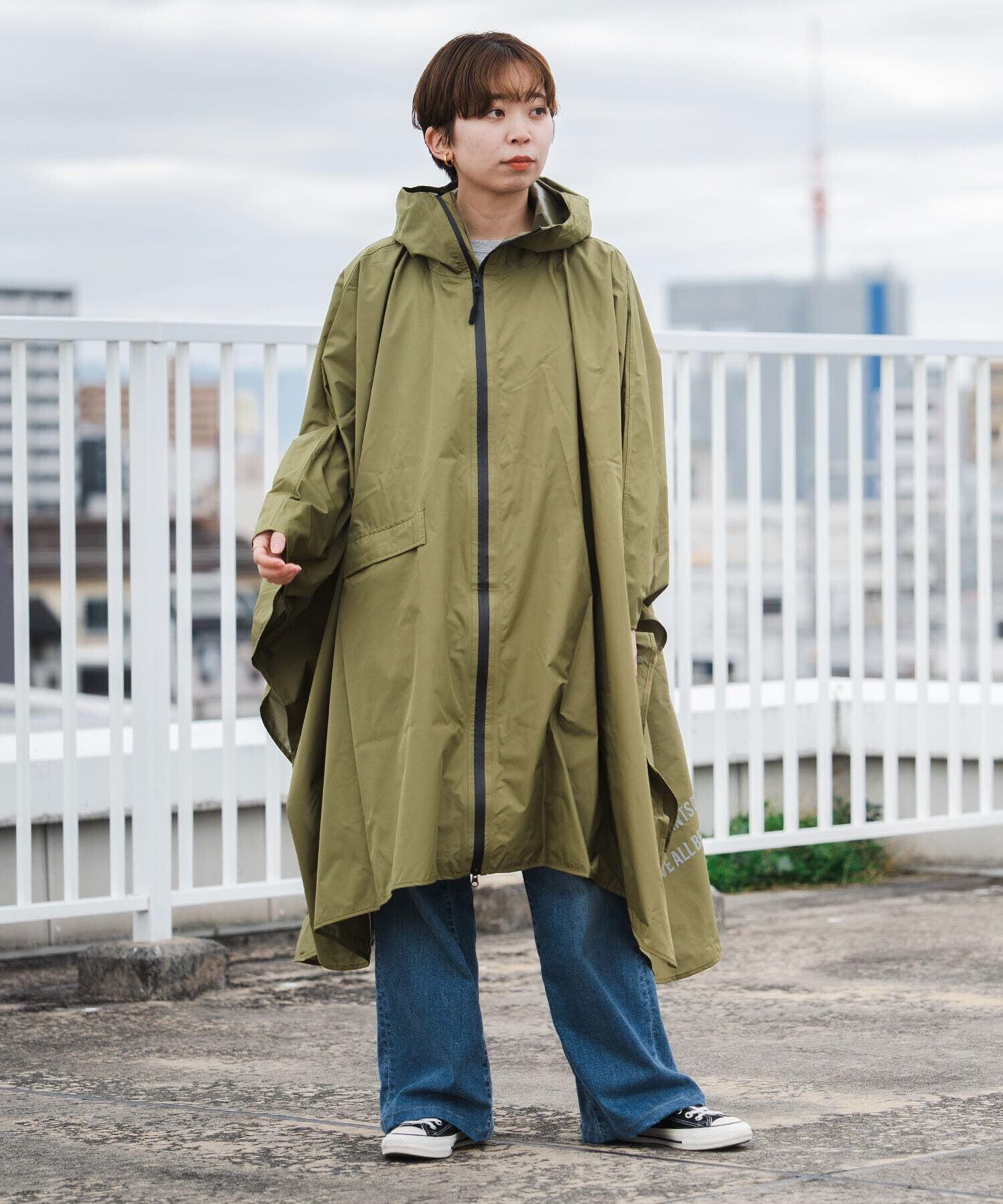 カーキ色のシンプルでスタイリッシュなデザインは、男性・女性を問わず幅広い世代にマッチします。おしゃれで機能的なレインポンチョは、アウトドアイベントや自転車移動時にもぴったりです。