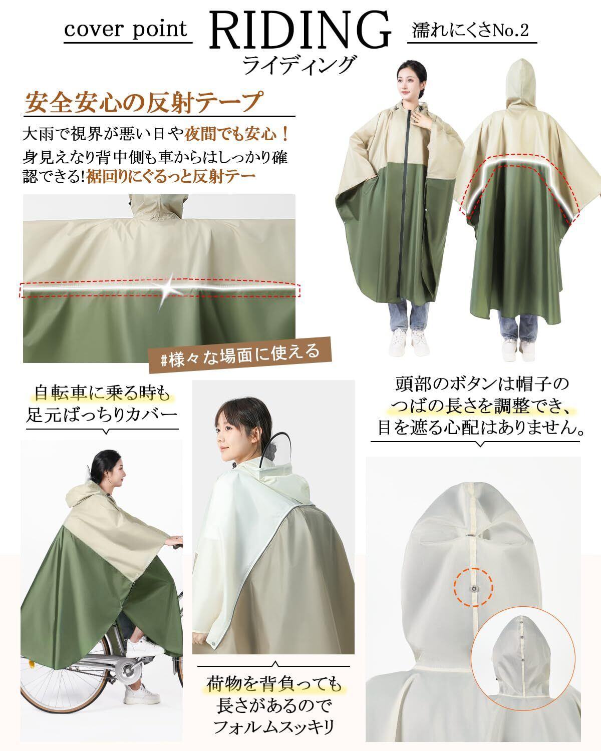 \【◆[HINOKAZE] レインコート 自転車【取り外し可能なフード・超軽量・20秒収納】レインコート レディース カッパ 自転車 レインポンチョ ロング かっぱ 雨具 通学 通勤 旅行 超防水 速乾 お洒落 かわいい 収納袋付 コンパクト 男女兼用】/