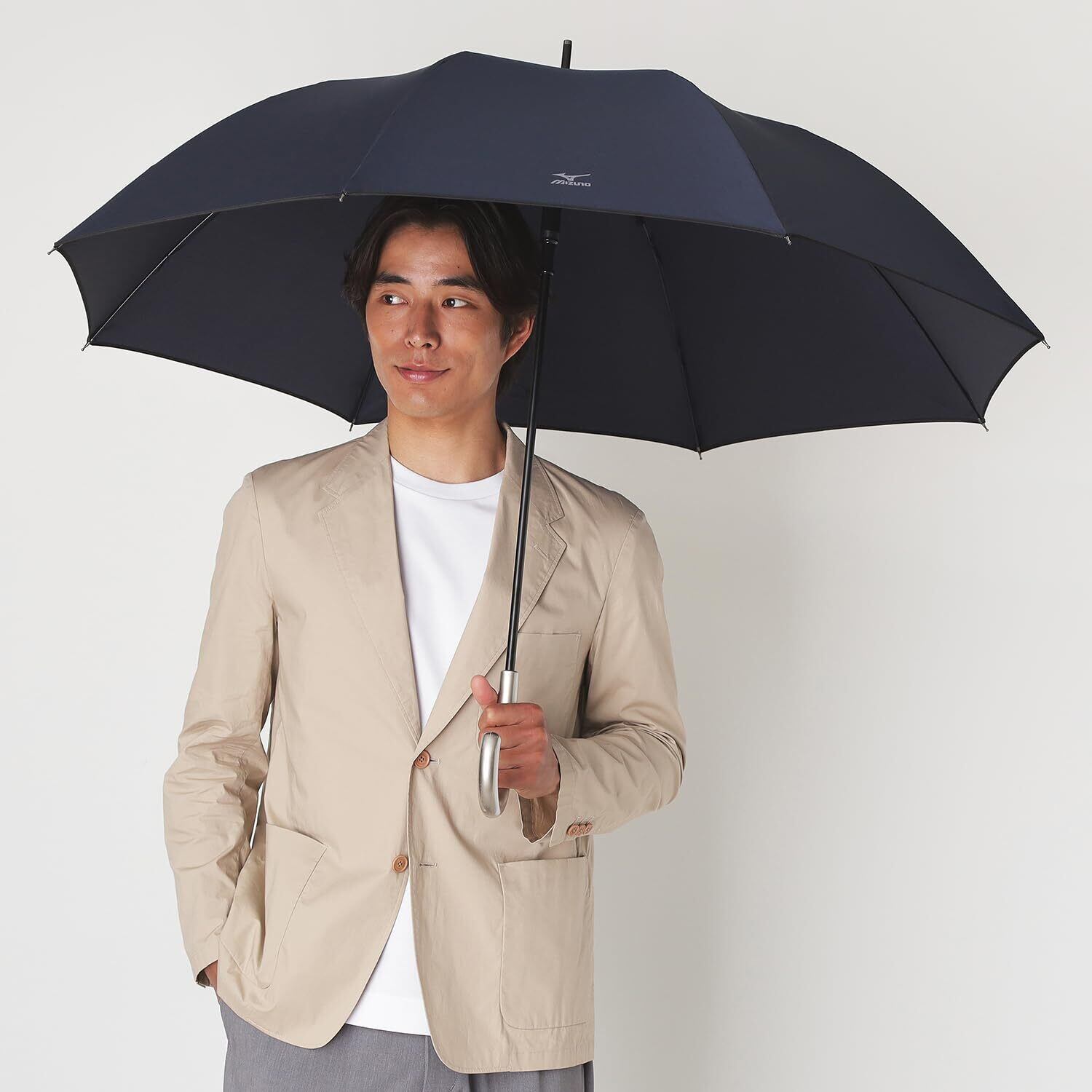 MIZUNO(美津浓) 绅士跳跃式耐风长伞 这是一款即使在强风中也可放心使用的耐风结构,一键开合方便的长柄伞。 亮点的大商标。 上班、上学都很推荐的雨伞。
