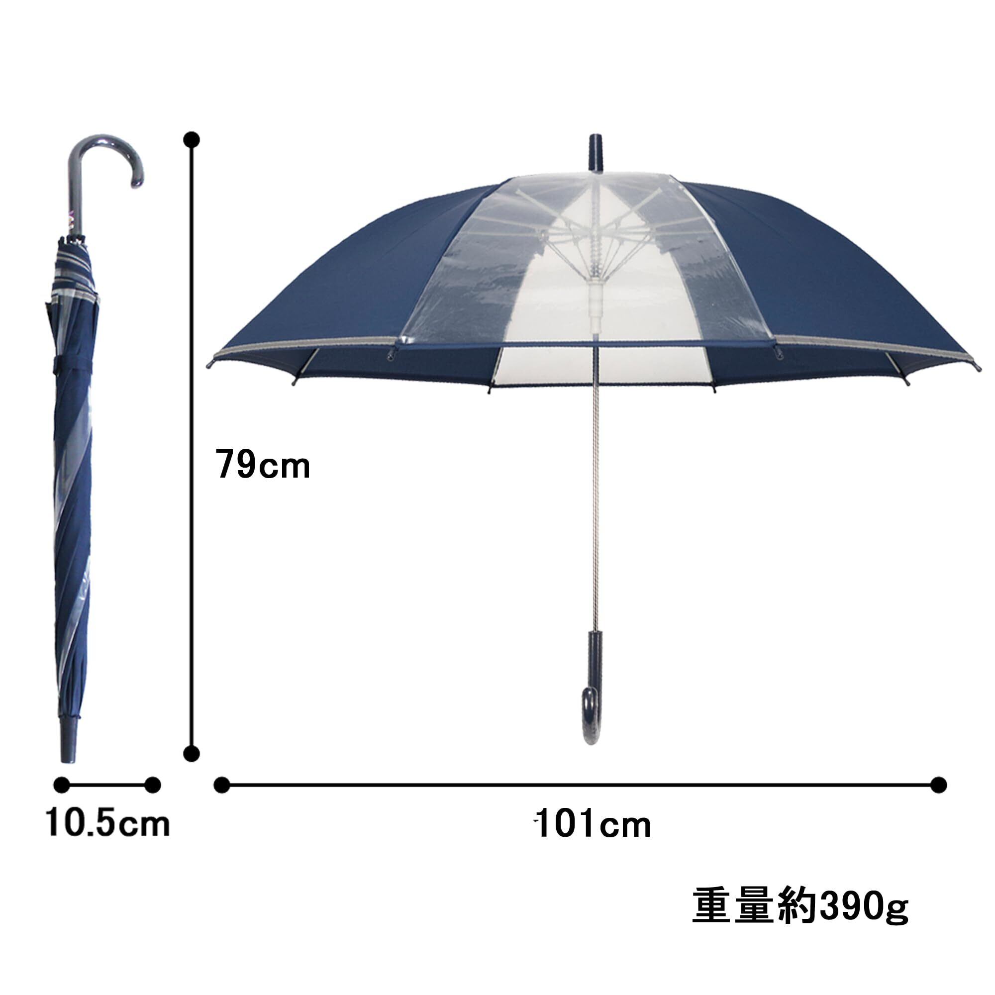 学童 耐風 無地 2駒透明 反射テープ付 ジャンプ傘 ネイビー 58cm ASS09JP58