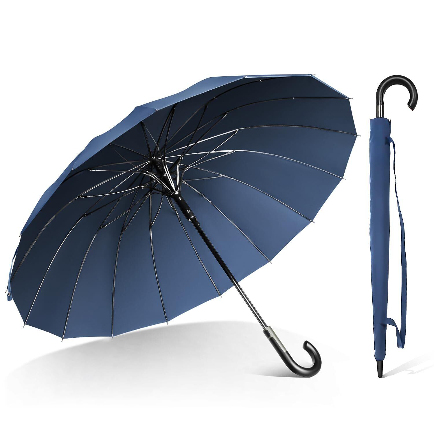 「傘 メンズ 長傘」は、強化された16本骨を使用し、豪雨や台風の厳しい気象条件にも耐えうる設計です。強風で傘が裏返る心配がないため、安心してご使用いただけます。