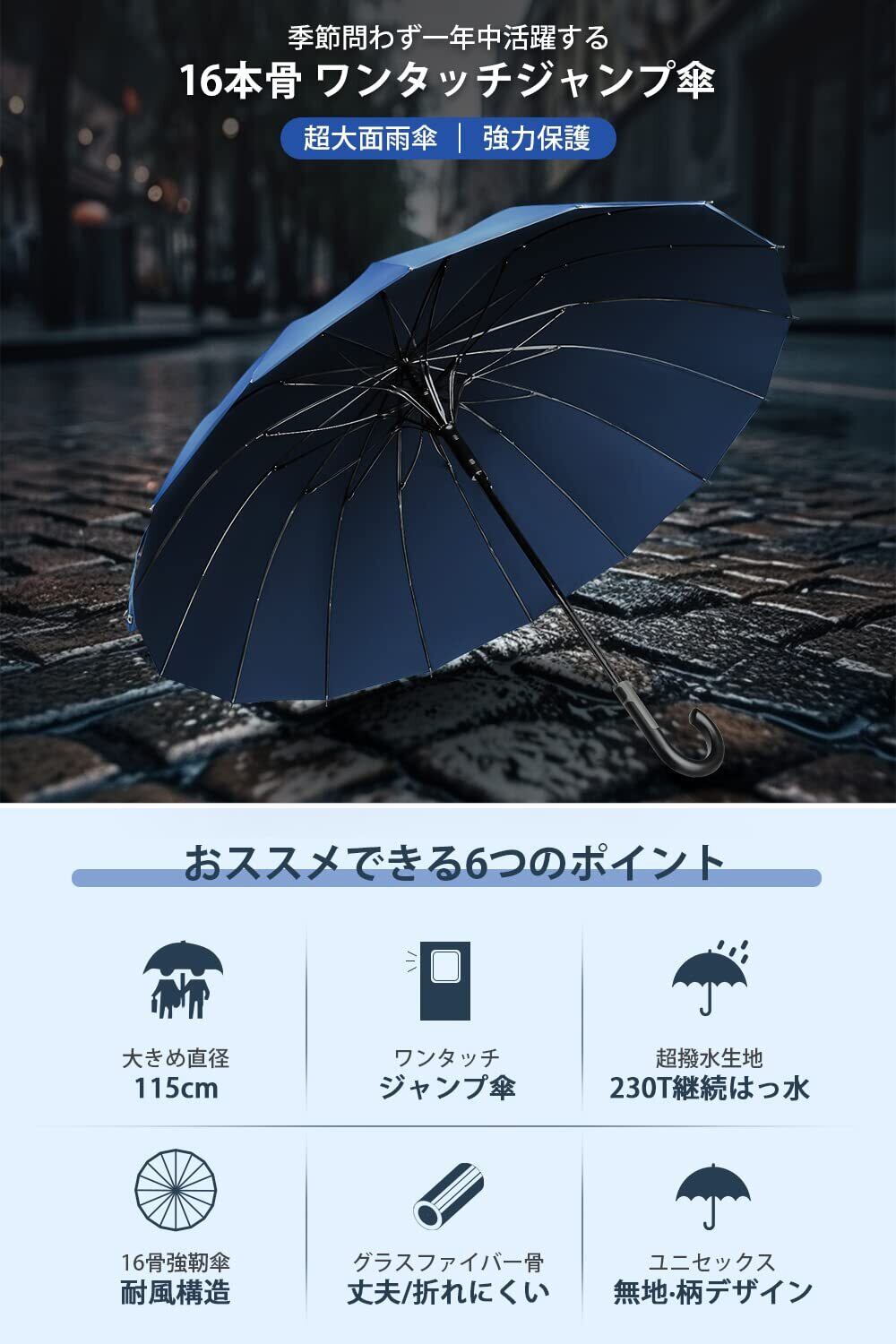 \【◆傘 メンズ 長傘 【高強度16本骨・超大サイズ】 直径115cm ジャンプ傘 大きい 230T超撥水 雨傘 丈夫なグラスファイバー 耐風傘 ワンタッチ 自動開け 埋め込みボタン 晴雨兼用 紳士傘 軽量 メンズ レディース 豪雨 梅雨対策 台風対応 男女兼用 収納カバー付き】/