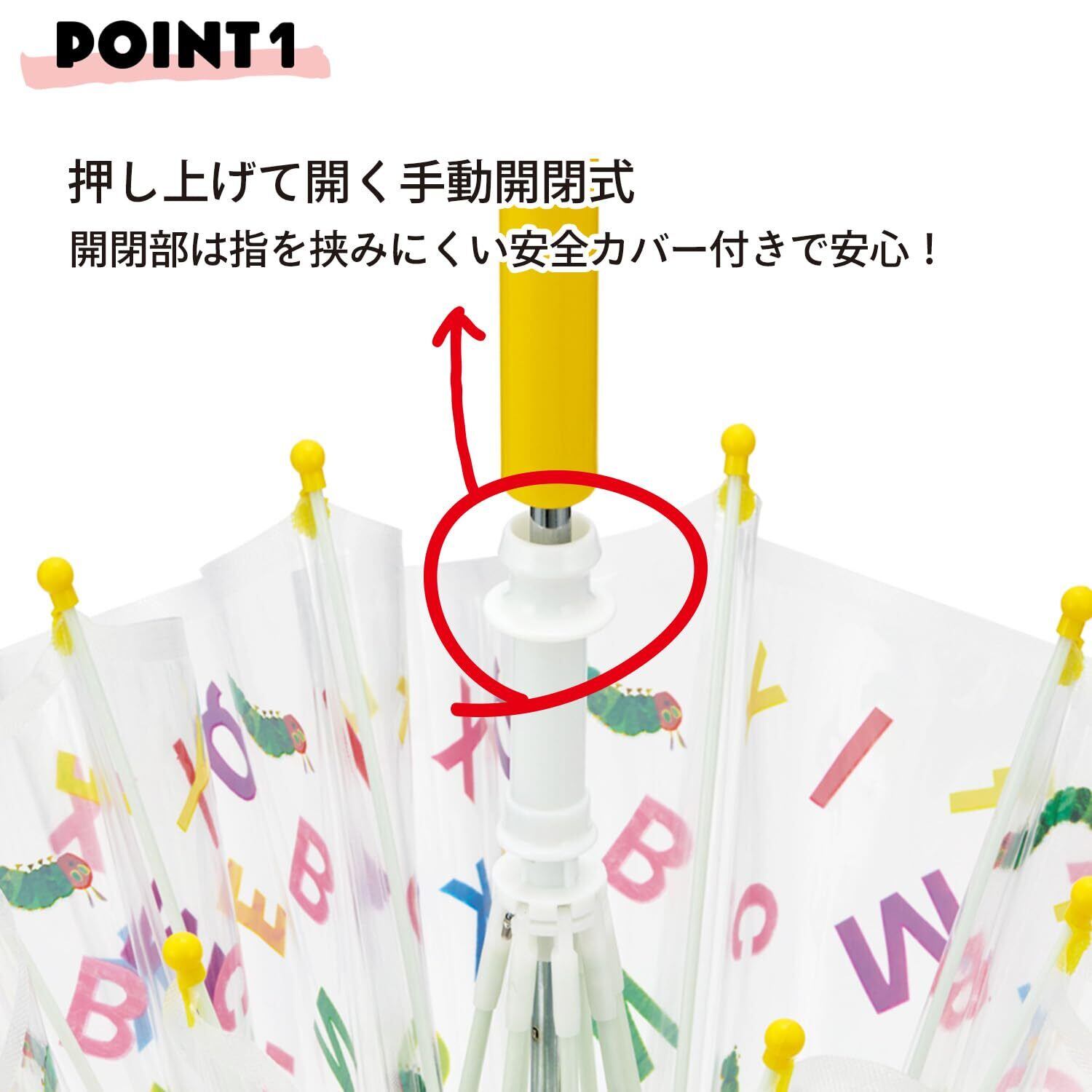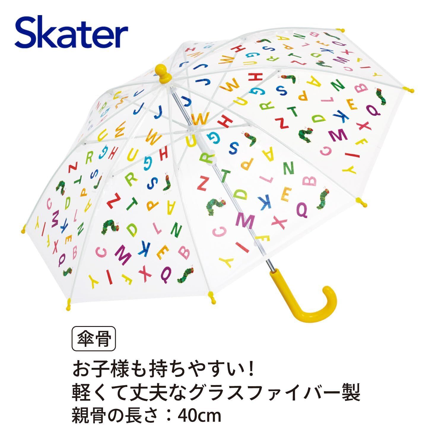 \【◆スケーター(Skater) 傘 子供用 ビニール傘 40cm はらぺこあおむし アルファベット 3~4才 95~105cm 指を挟みにくい手開き式 8本骨 ネームタグ付き UBV2-A】/