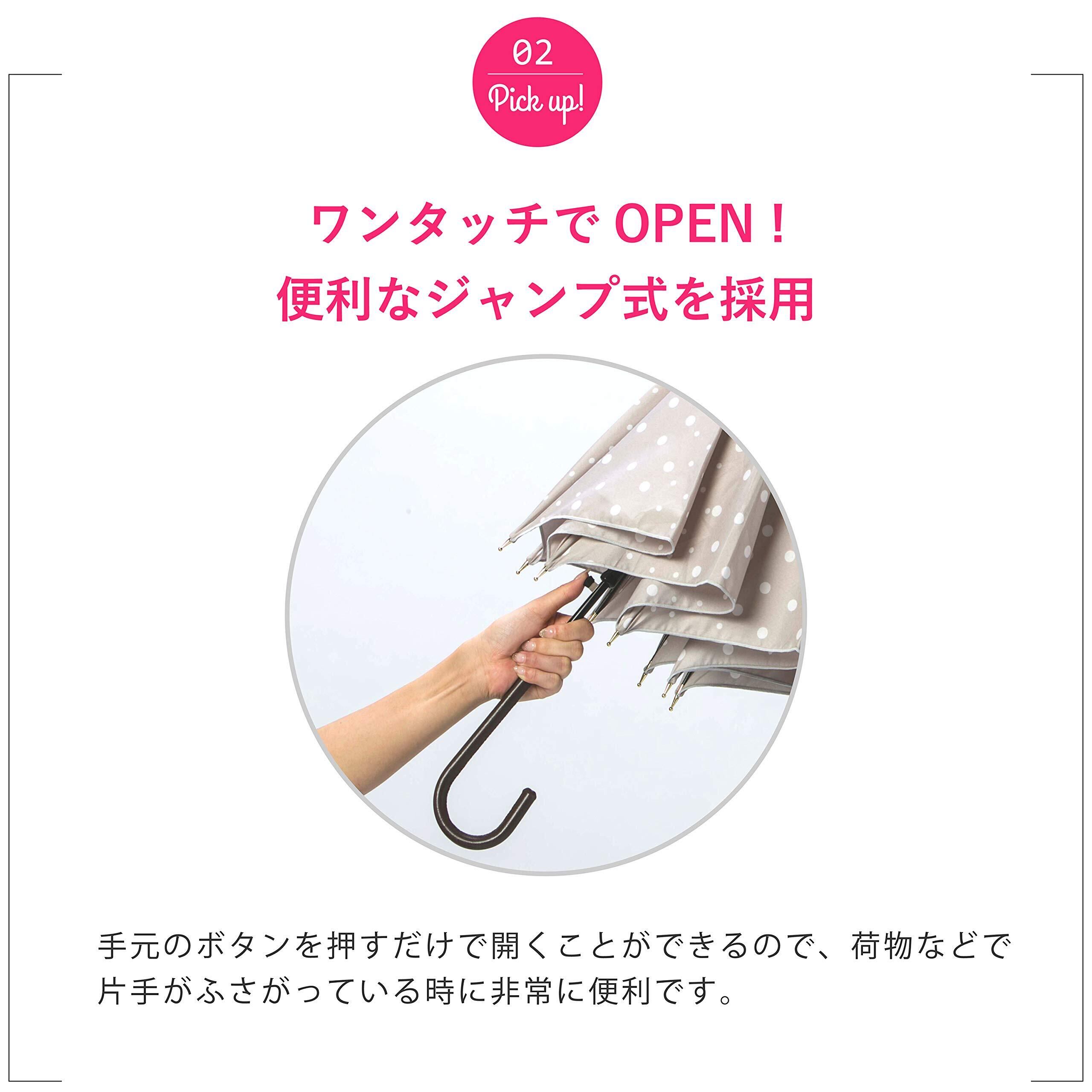 ワンタッチジャンプ式のため、片手で簡単に開閉ができ、急な雨でもサッと対応できます。両手がふさがっていてもストレスなく扱えるのが嬉しいポイントです。
