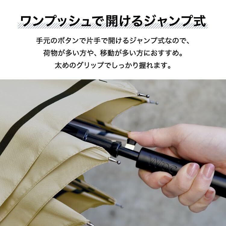 Wpc. 雨傘 BASIC JUMP ベージュ シングルライン 長傘 メンズ 《晴雨兼用》 親骨65cm 直径110cm 大きい 軽い ジャンプ はっ水 耐風 風に強い 丈夫 男性 女性 レディース 通勤 通学 おしゃれ シンプル UX01-078-001