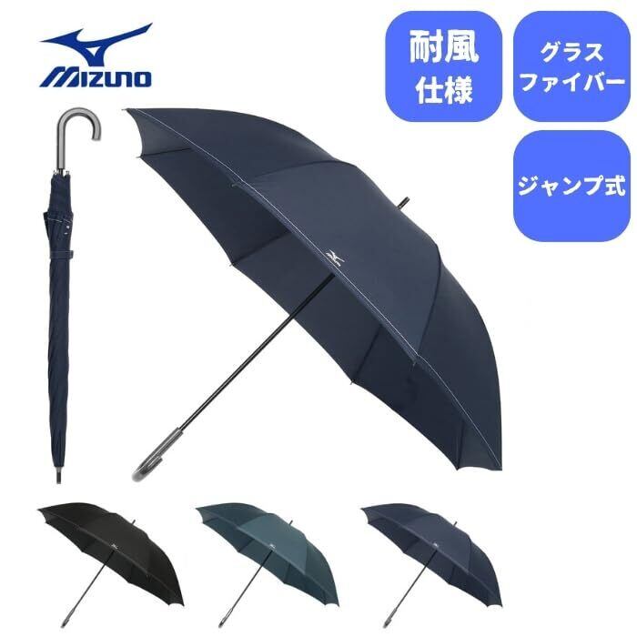 MIZUNO 紳士ジャンプ式長傘 大寸 耐風傘 無地×ステッチ こちらは強風にも安心な耐風構造で、ワンタッチで開くことの出来る便利なジャンプ式の長傘です。大きいサイズの長傘で雨に濡れにくく、また無地にステッチのデザインで通勤、通学にお勧めです。