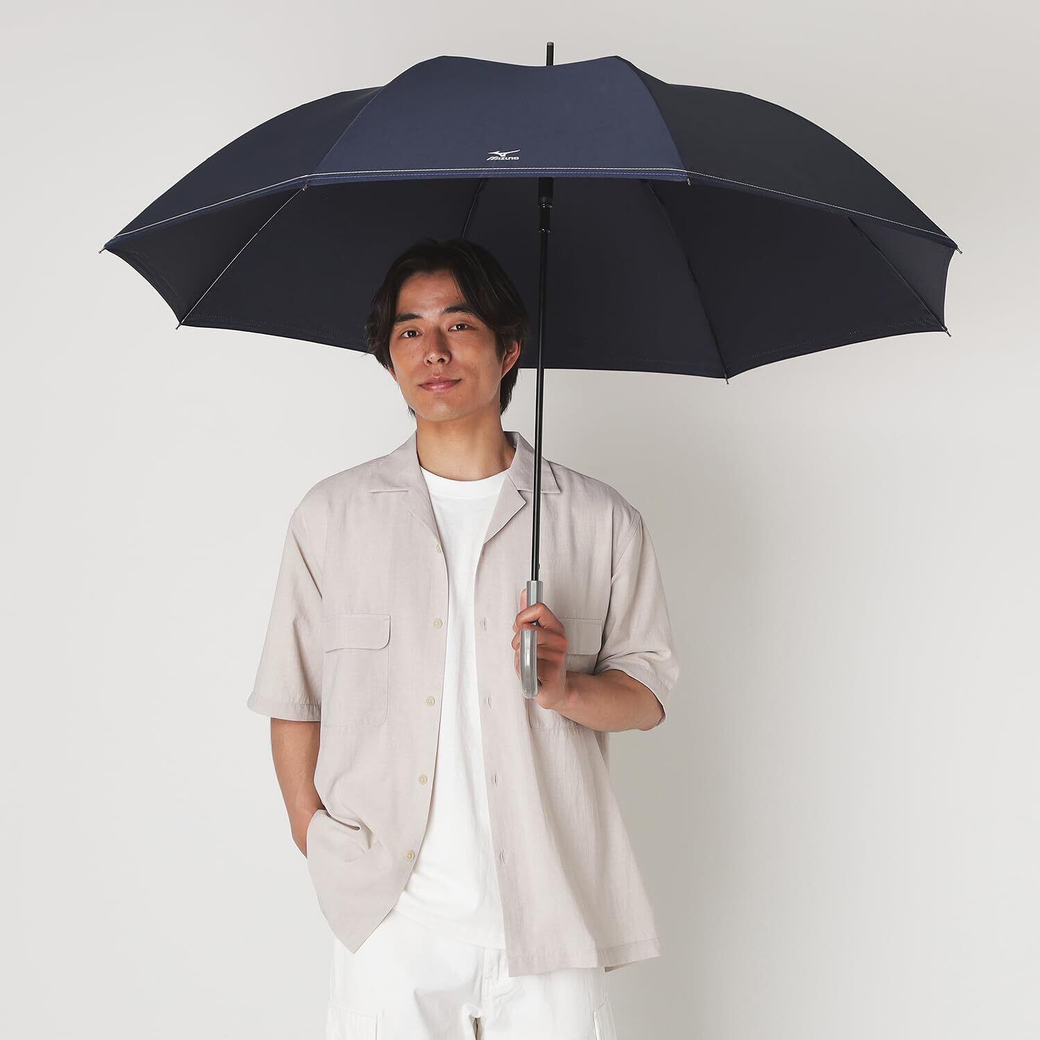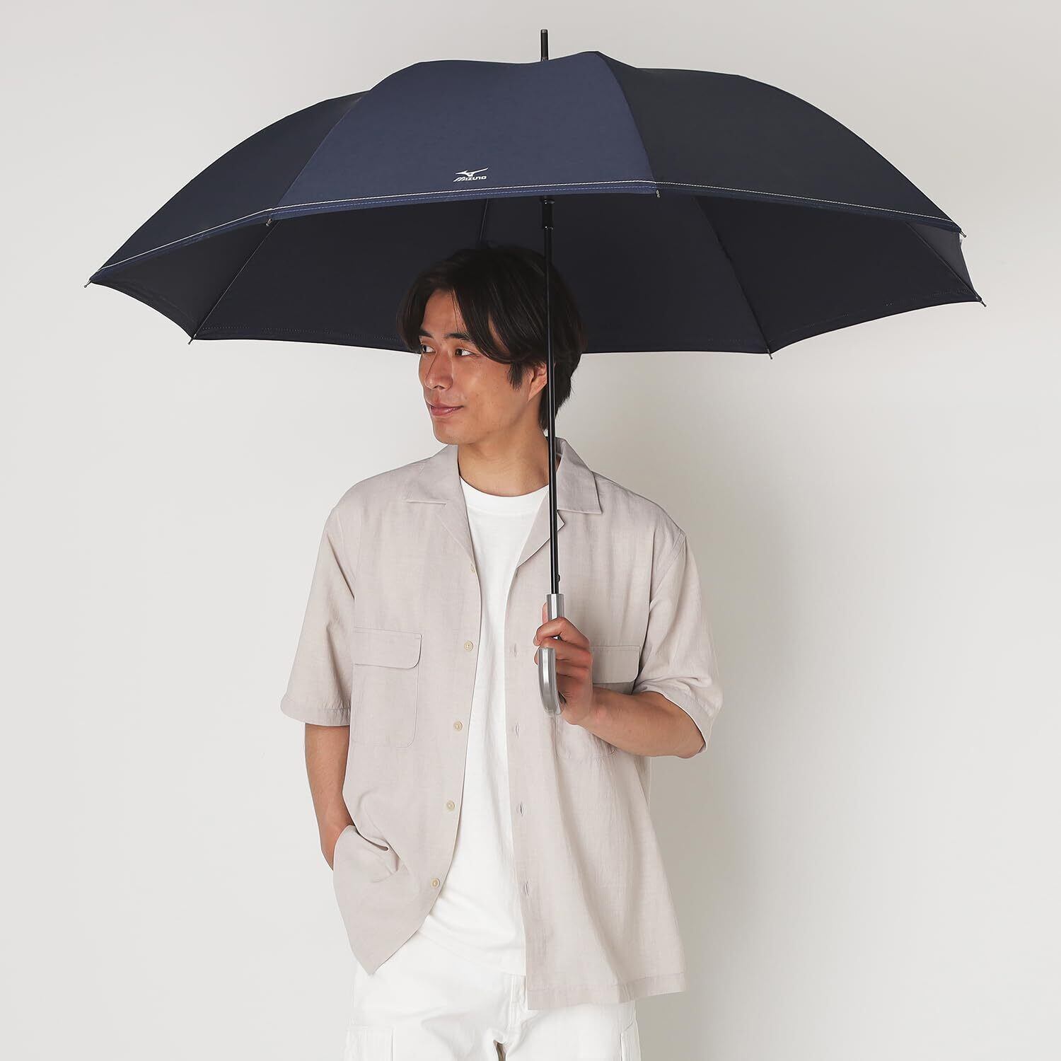持ち手がメタリック加工を施した日本を代表するスポーツメーカー「MIZUNO」の雨傘です。 無地なので何にでも合わせやすく、デイリー使いしやすいのがポイント。