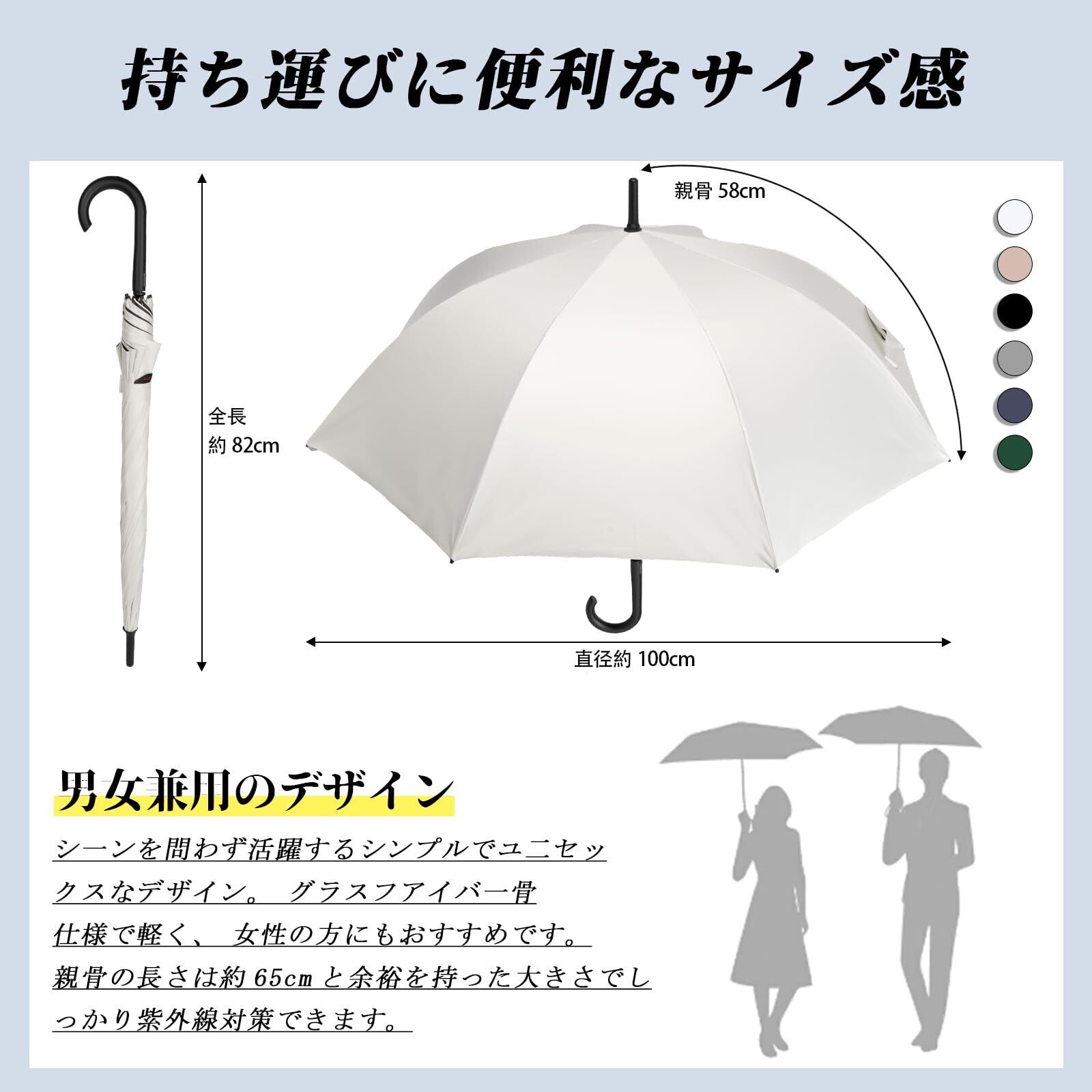 「Zruier 日傘」は、完全遮光100%とUVカット機能を備えた高性能の日傘です。親骨58cmのワイドサイズは、広範囲をしっかり覆い、強い日差しや紫外線から守ります。軽量なデザインでありながらも、しっかりとしたグラスファイバー骨組みのため、耐久性にも優れています。