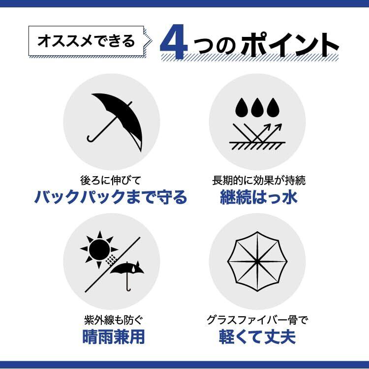 開くと55cmの大きな直径を提供し、雨や日差しからしっかりと守ってくれます。男性の体形にも対応できるサイズで、二人で差しても余裕があります。おしゃれで機能的な設計が、普段の生活に便利さをプラスします。