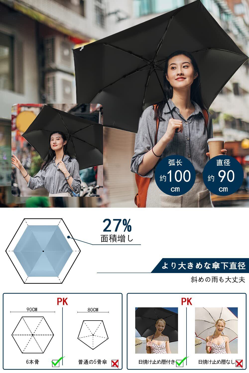 【持ち運び便利】長さ22cm、幅4cmに折りたためるので、バッグやポケットにすっぽり収まります。晴雨兼用。持ち歩いて、外出に負担がない。折りたたみ傘はいつでも使い勝手が良く、突然の雨でも安心です。