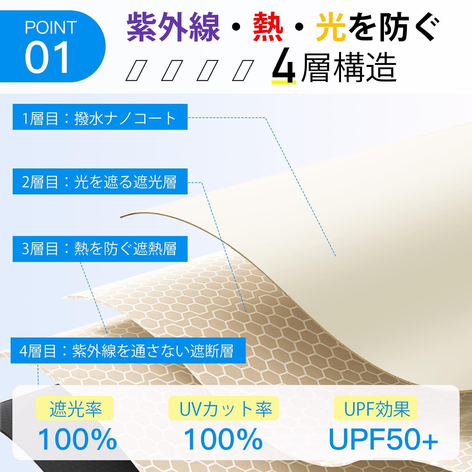 【JIS認証 UVカット率100% & 完全遮光】夏の肌と快適さを守る!遮光率が100%に至り、強力な遮光性で太陽光をしっかりカットし、紫外線を徹底ブロックし、敏感な肌をしっかり保護。特殊コーティング生地が熱を抑え、心地よい涼しさを提供、まるで清涼な木陰にいるような快適さを実現!