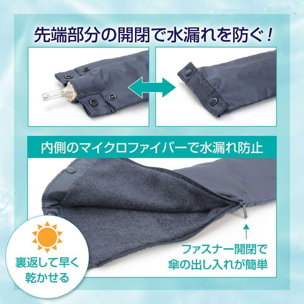 撥水表面を持つこのカバーは、傘が濡れた状態でも水滴を気にせず収納できます。傘を使った後のストレスを軽減し、カバンの中を濡らさずに済むので安心です。通勤や通学時にも重宝すること間違いなし!