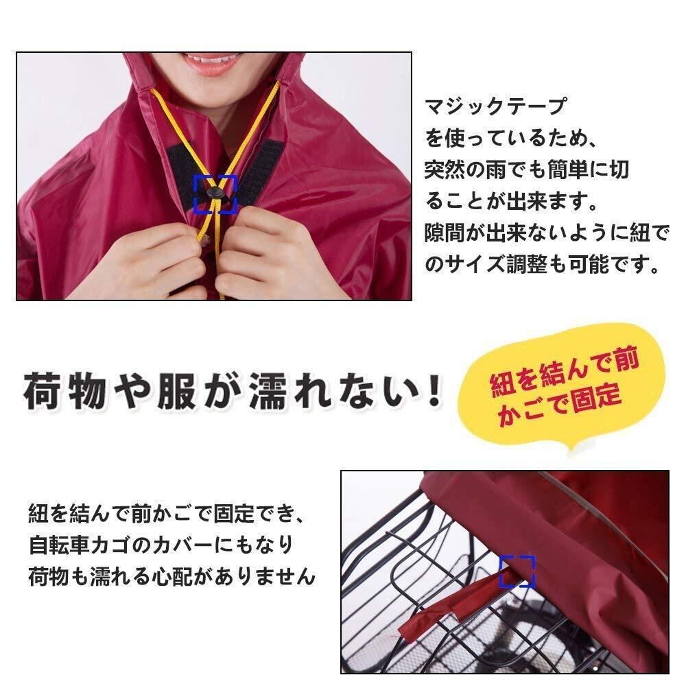 大きい二重ツバが顔をしっかりと保護し、視界を確保したまま雨を防ぎます。また、フリーサイズ(145 * 120 * 140 * 15cm)なので、さまざまな体型の方にフィットします。通勤や通学、自転車、バイクなど、幅広いシーンで活躍する一着です。