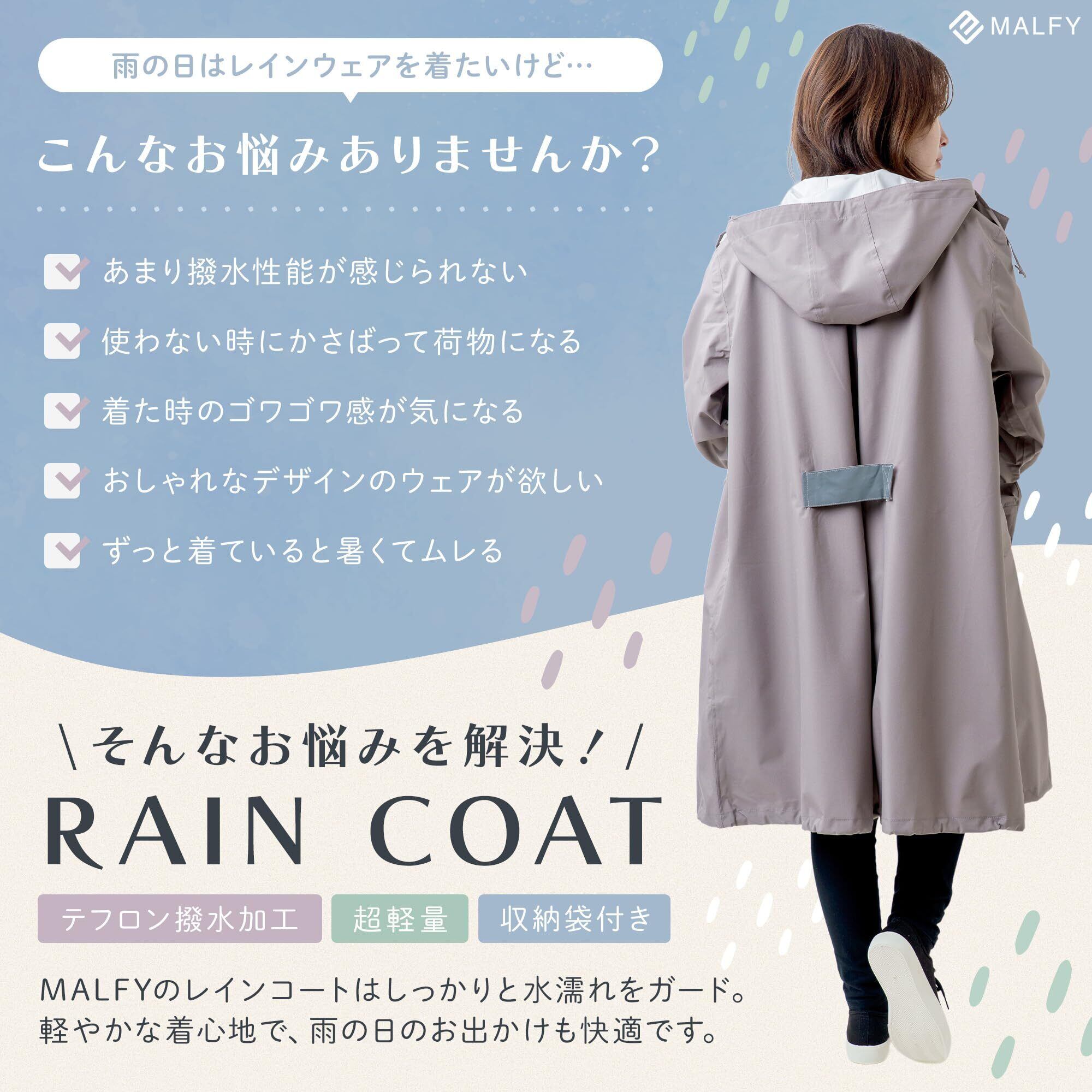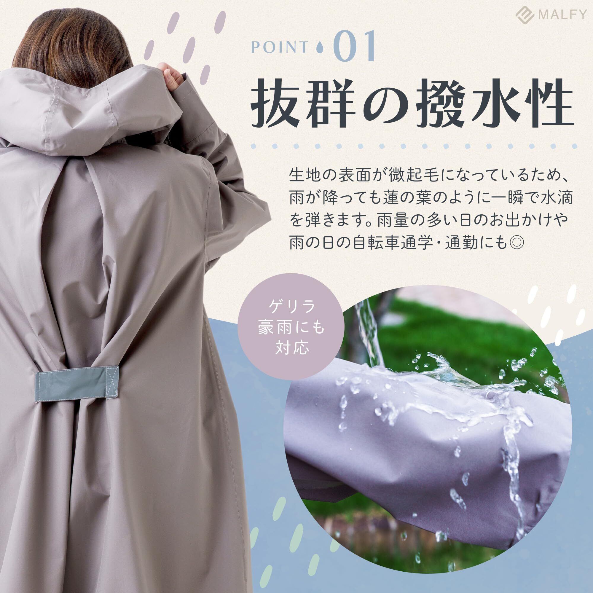 [MALFY] 驚きの撥水力と軽さと柔らかさ【超軽量300g×高耐水圧×高透湿×超撥水】 テフロン撥水加工 リュック対応レインコート 自転車 レインコート レディース ロング丈 耐水圧