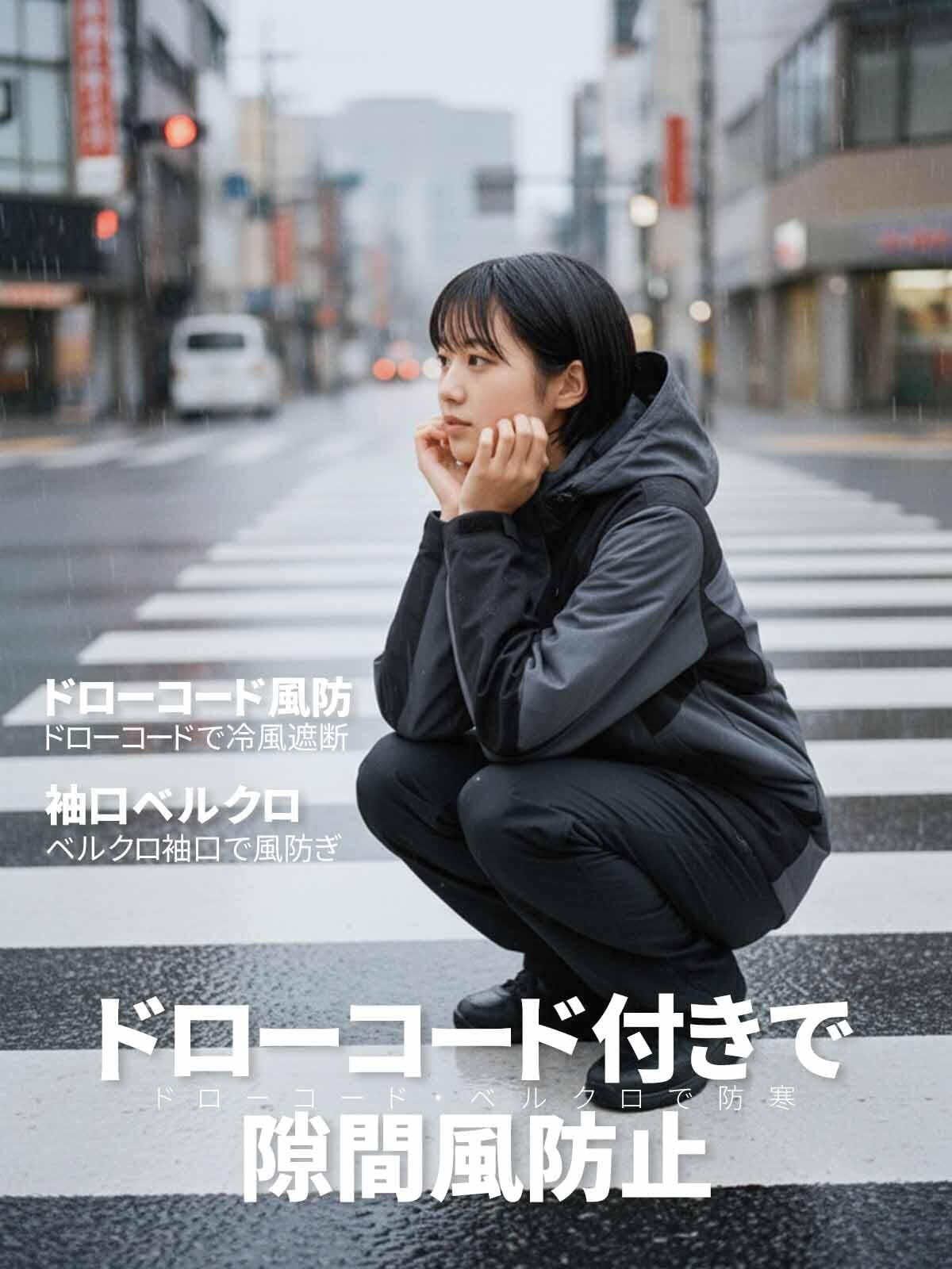 シンプルなデザインが特徴で、通勤やアウトドアにぴったり。防風性も高く、風の強い日でも安心して着ることができます。また、動きやすさを考慮した設計で、ストレスなく行動できるのも嬉しいポイントです。