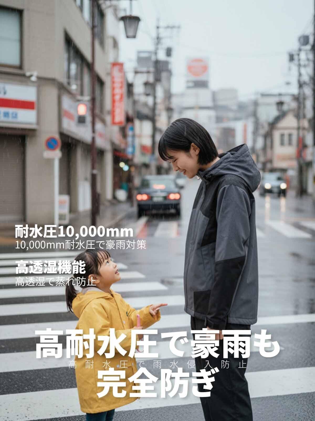 こちらのレインウェアは上下セットで、着回しやすさ抜群!気温や天候に応じて、上下を自由に組み合わせてコーディネートができます。特に梅雨対策や不意の雨の多い時期に役立つ、頼れるアイテムです。