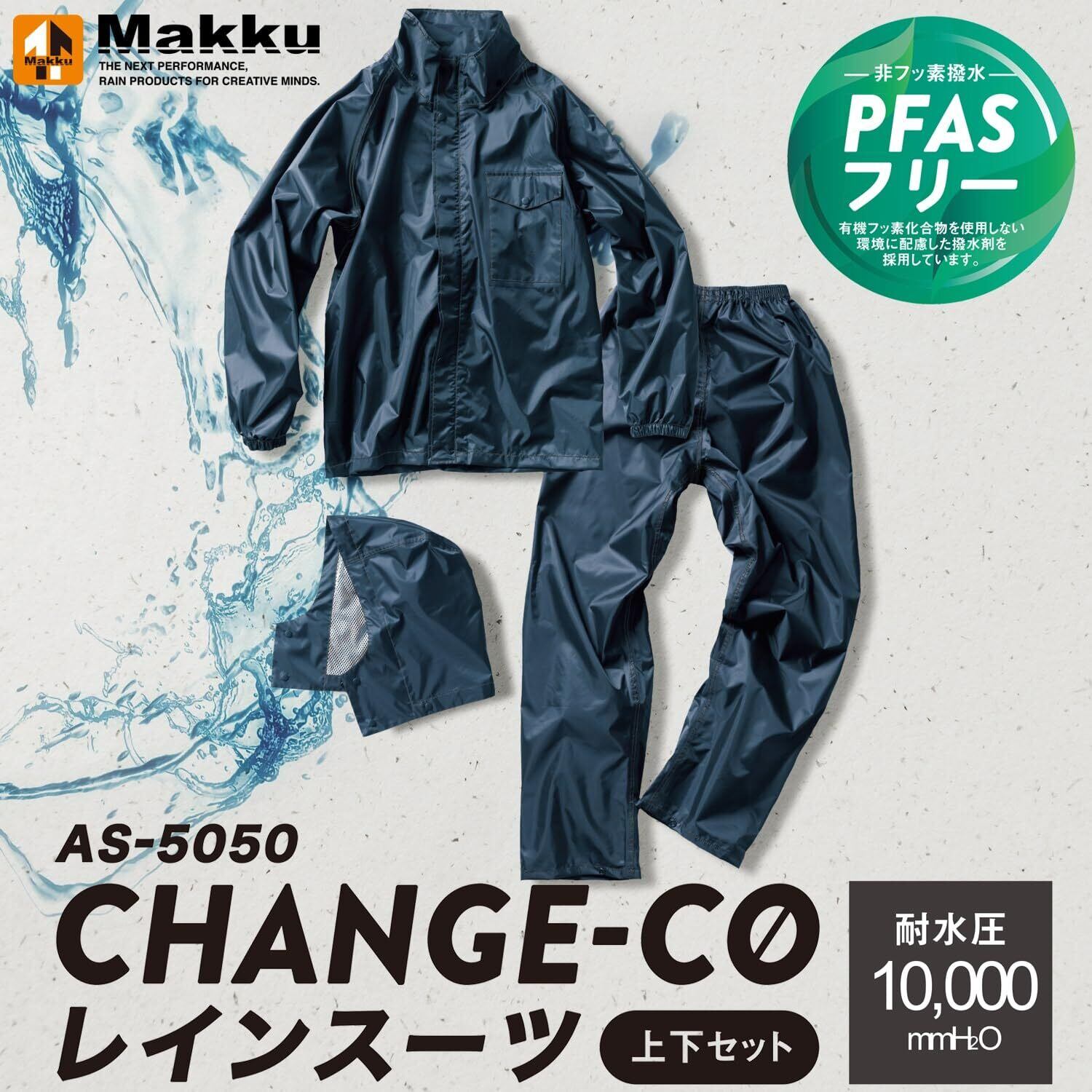 [マック]のレインスーツ AS-5050は、機能性とデザイン性を兼ね備えた必須アイテムです。雨の日もアクティブに過ごしたいあなたをしっかりサポートします!