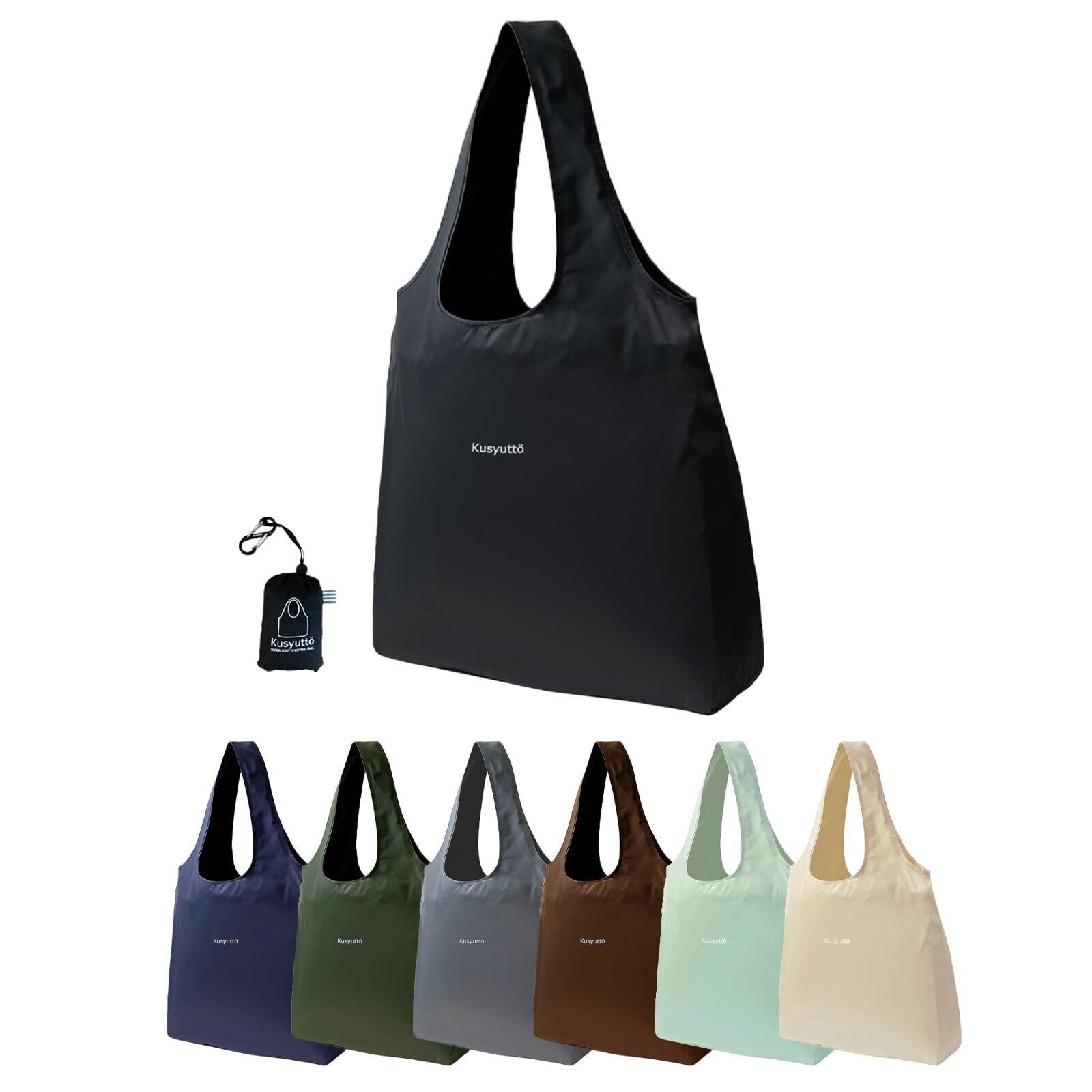 [Lampo] 【極小軽量】エコバッグ たたまない!超簡単!クシュっと丸めるだけ!大容量 コンパクト おしゃれ マチ付き 丸洗い 肩掛け ショッピングバッグ 5㎝×7㎝ カラビナ付き
