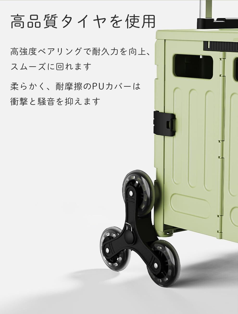 ショッピングカート 折りたたみ ストッパー付き 静音キャスター 3色 買い物カート (グリーン, M (4輪))