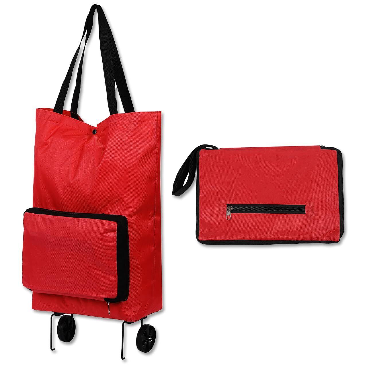 \【◆[キャリーカート 折りたたみ キャスター付きエコバッグ 軽量 コンパクト おしゃれ 買い物カート ショッピングカート アウトドア(レッド)]】/