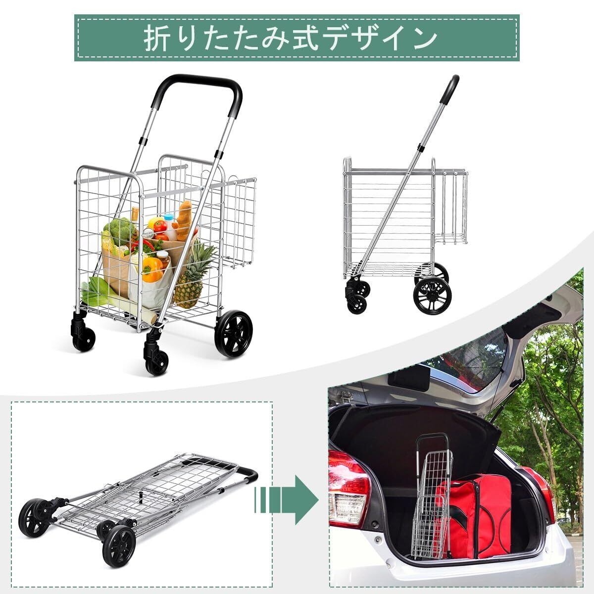 ショッピングキャリー 買い物カート キャリーカート 4輪 折りたたみ 大容量 耐荷重35kg 軽量 台車 コンパクト カート 収納便利 多用途 買い物 洗濯 アウトドア