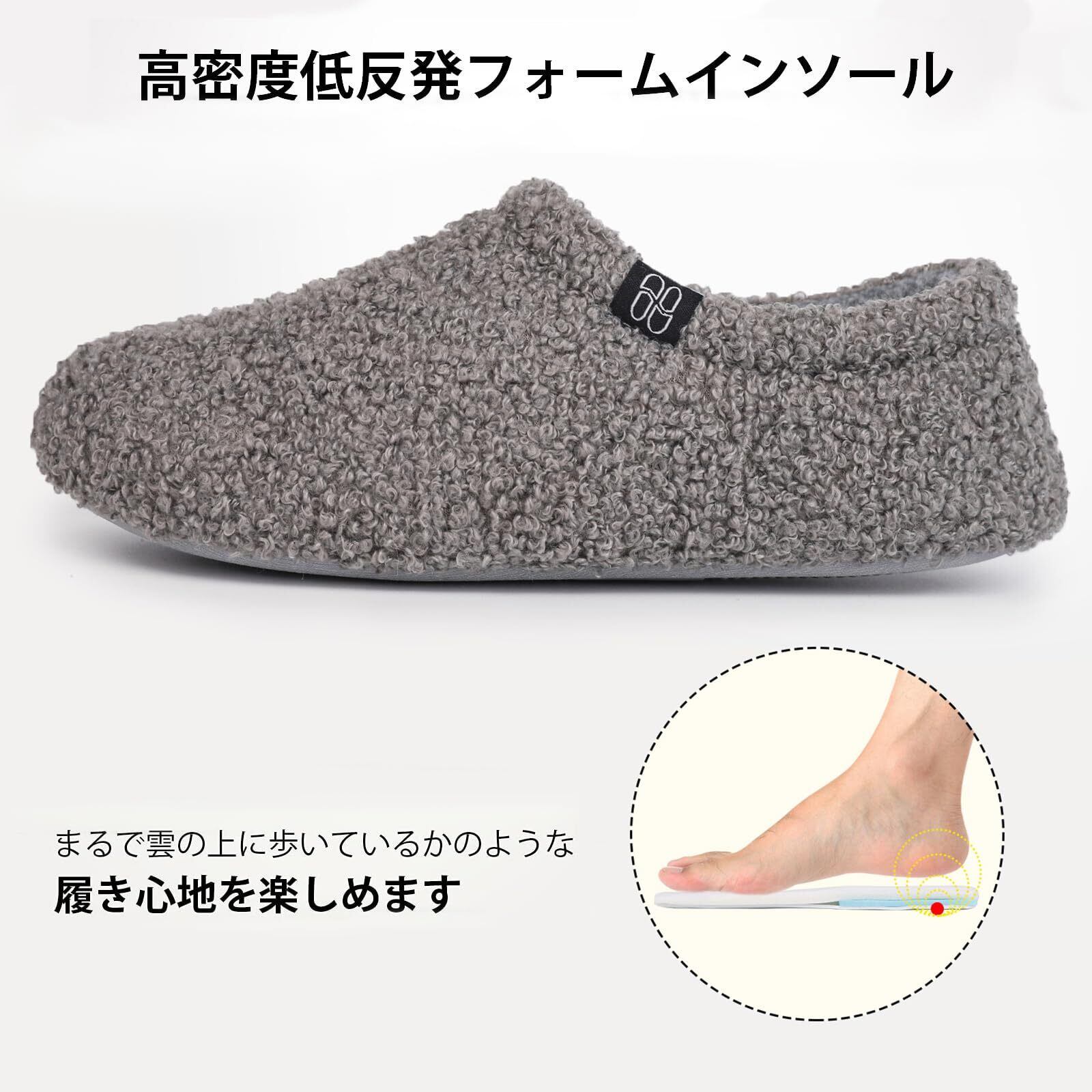低反発素材を使用しているため、足の形にフィットし、しっかりとサポートします。歩行時の衝撃を吸収し、長時間の着用でも疲れにくい設計です。自宅でのリラックスタイムや、軽い外出時にも快適にお使いいただけます。
