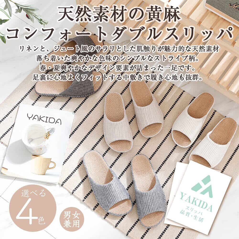 \【◆[YAKIDA] 人間工学デザイン スリッパ 室内 麻 ルームシューズ 室内履き 静音 軽量 四季 前開き 滑り止め メンズ レディース 和風 無地 シンプル 素足で履く洗濯可】/