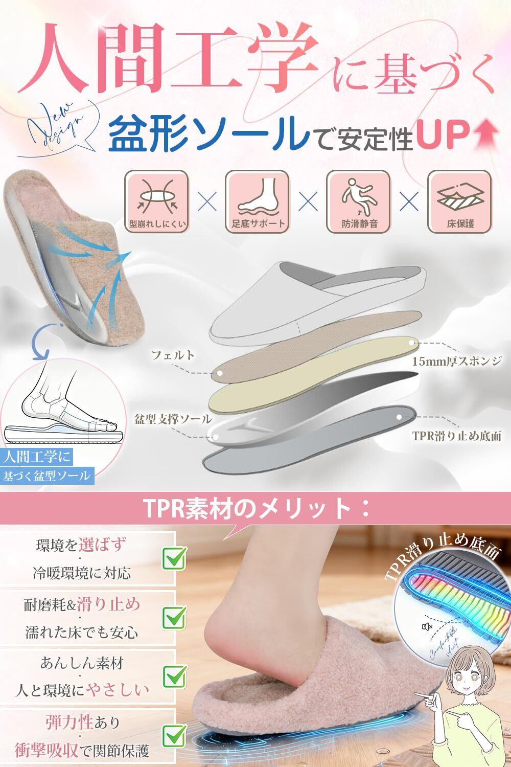 [YAKIDA] スリッパ 冬 もこもこ ルームシューズ 室内 レディース 【15mmクッション・しわがでない】 暖かい メンズ 防寒 室内履き 洗える 人間工学 静か 滑り止め