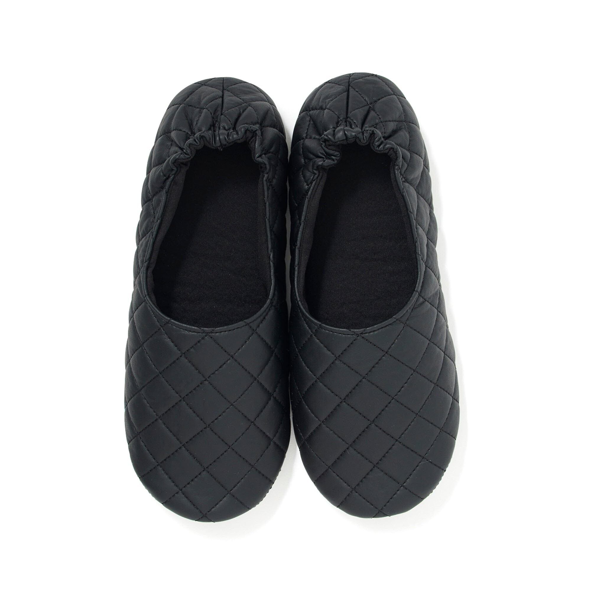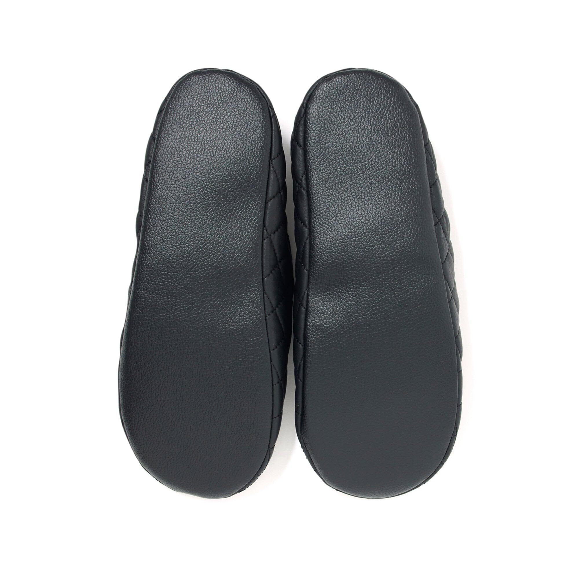 合皮を使用したキルティングのポケッタブルルームシューズです。