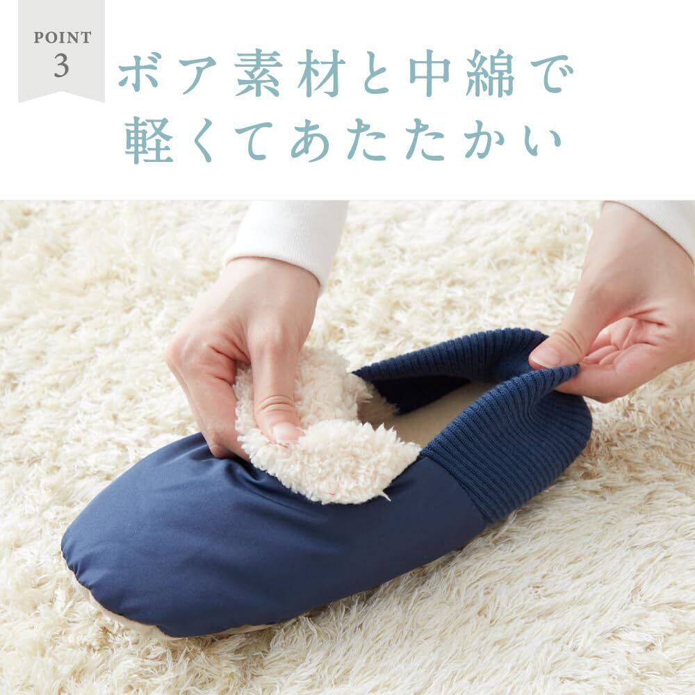 軽量素材を使用しており、長時間履いていても疲れにくい設計です。お部屋の中での移動が楽になるのはもちろん、迎える冬の寒さから足をしっかりと守ります。