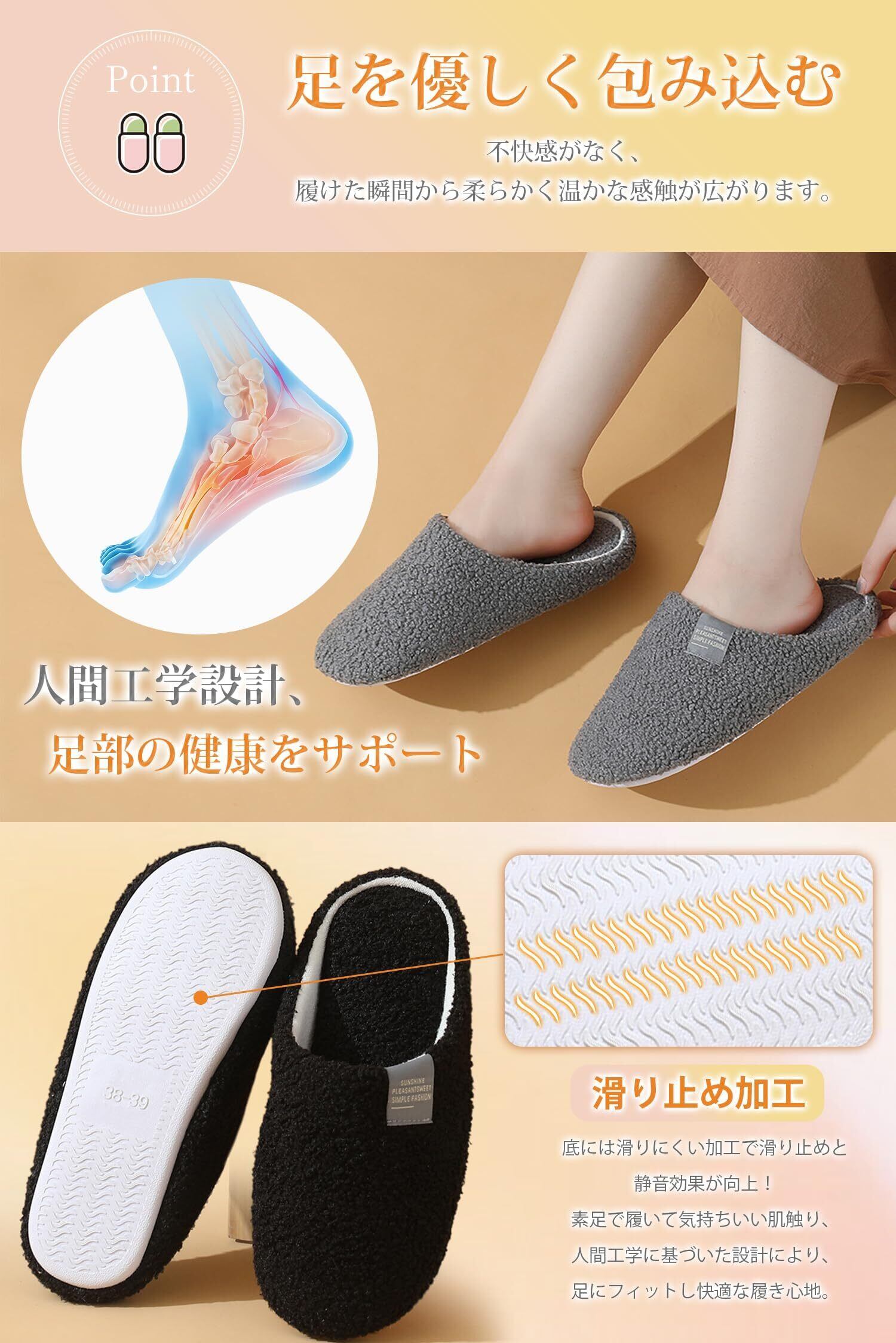 [MayCherry] あったか ルームシューズ スリッパ 冬用 7A抗菌防臭鑑定済み・雲感軽量・Airwarm防寒技術 もこもこスリッパ 室内スリッパ 防寒 室内履き 暖かい 超軽量 静音 洗える 滑り止め 22.5~25cm