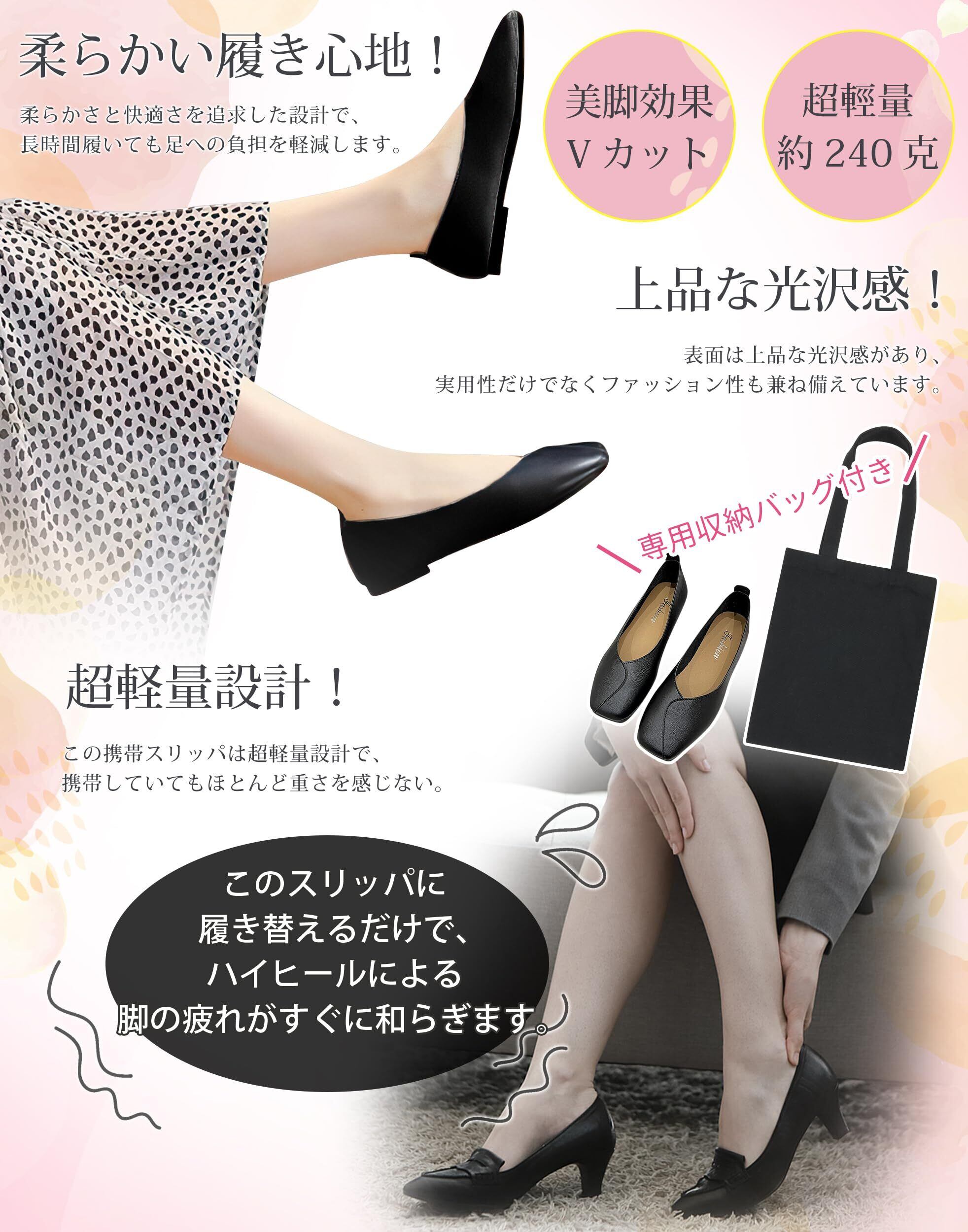 [Tophana] 【理学療法士監修】携帯スリッパ レディース 【柔らかい履き心地・上品な光沢感】 携帯シューズ フォーマルスリッパ 超軽量 収納バッグ付き