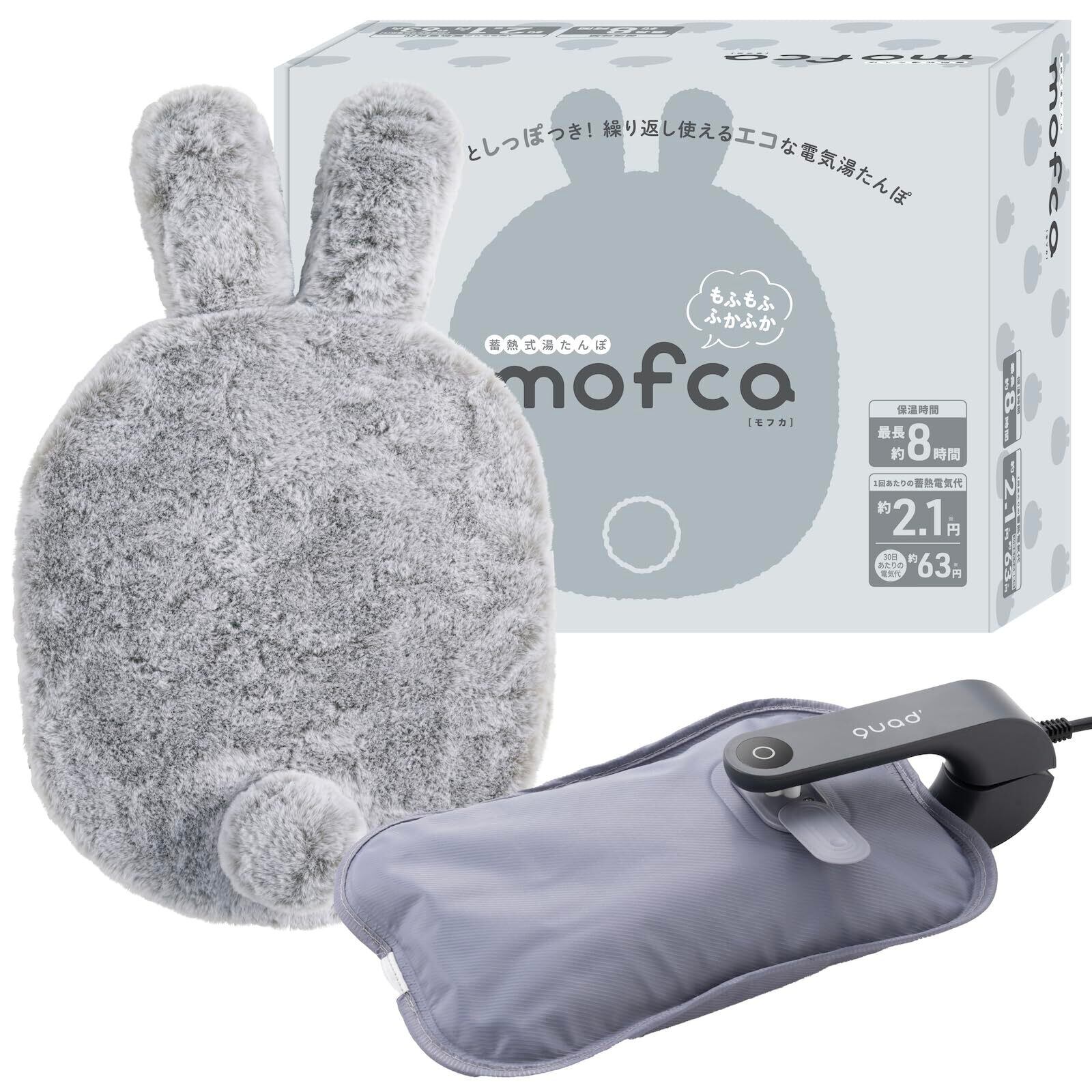 QUADS(クワッズ) しっぽと耳つき 蓄熱湯たんぽ mofca animal うさぎ モフカアニマル エコ 省エネ 蓄熱10分 最大8時間あたたかさ持続 お湯交換不要 洗濯OK コードレス カイロ あんか 兎 (ウサギ)