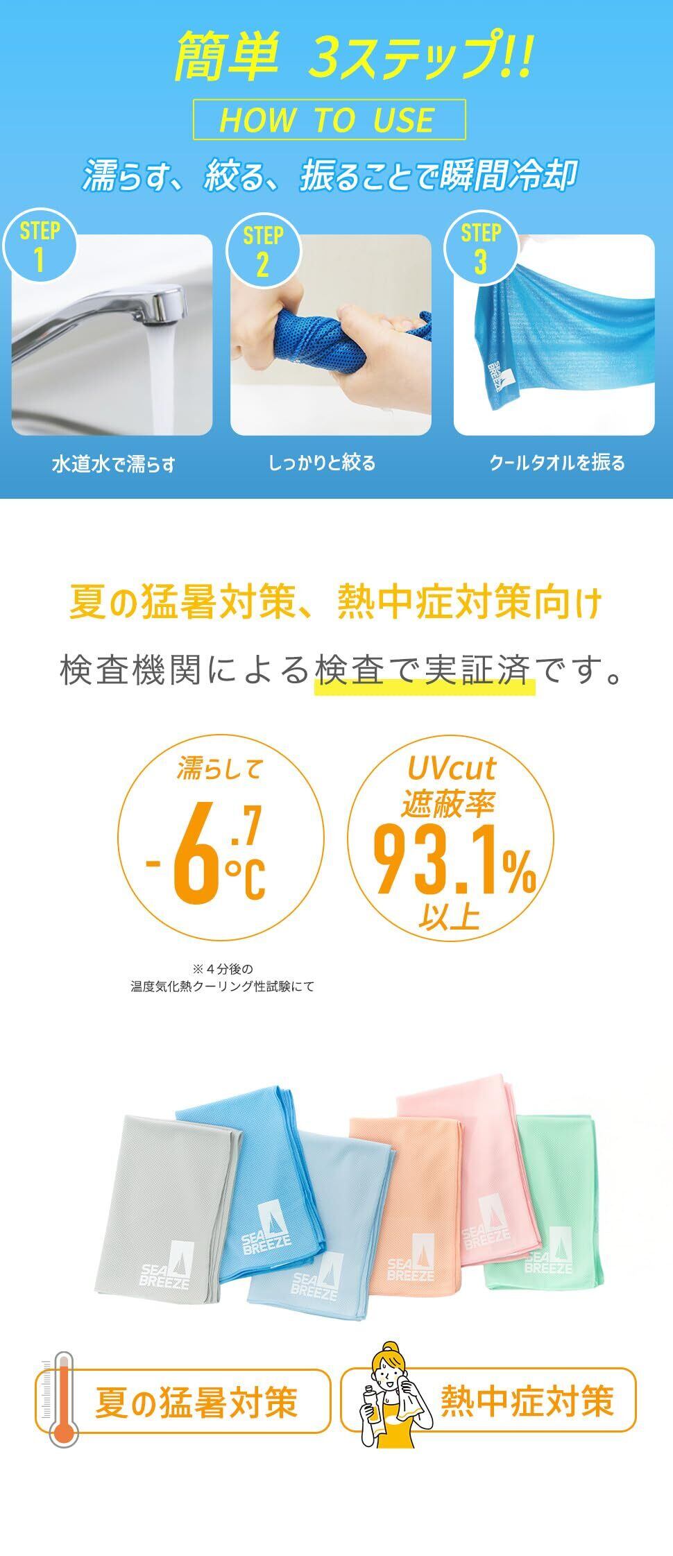 シーブリーズのクールタオルは、機能性とデザインを兼ね備えた必需品です。厳しい暑さを乗り切るための力強い味方として、あなたの夏を快適にサポートします。