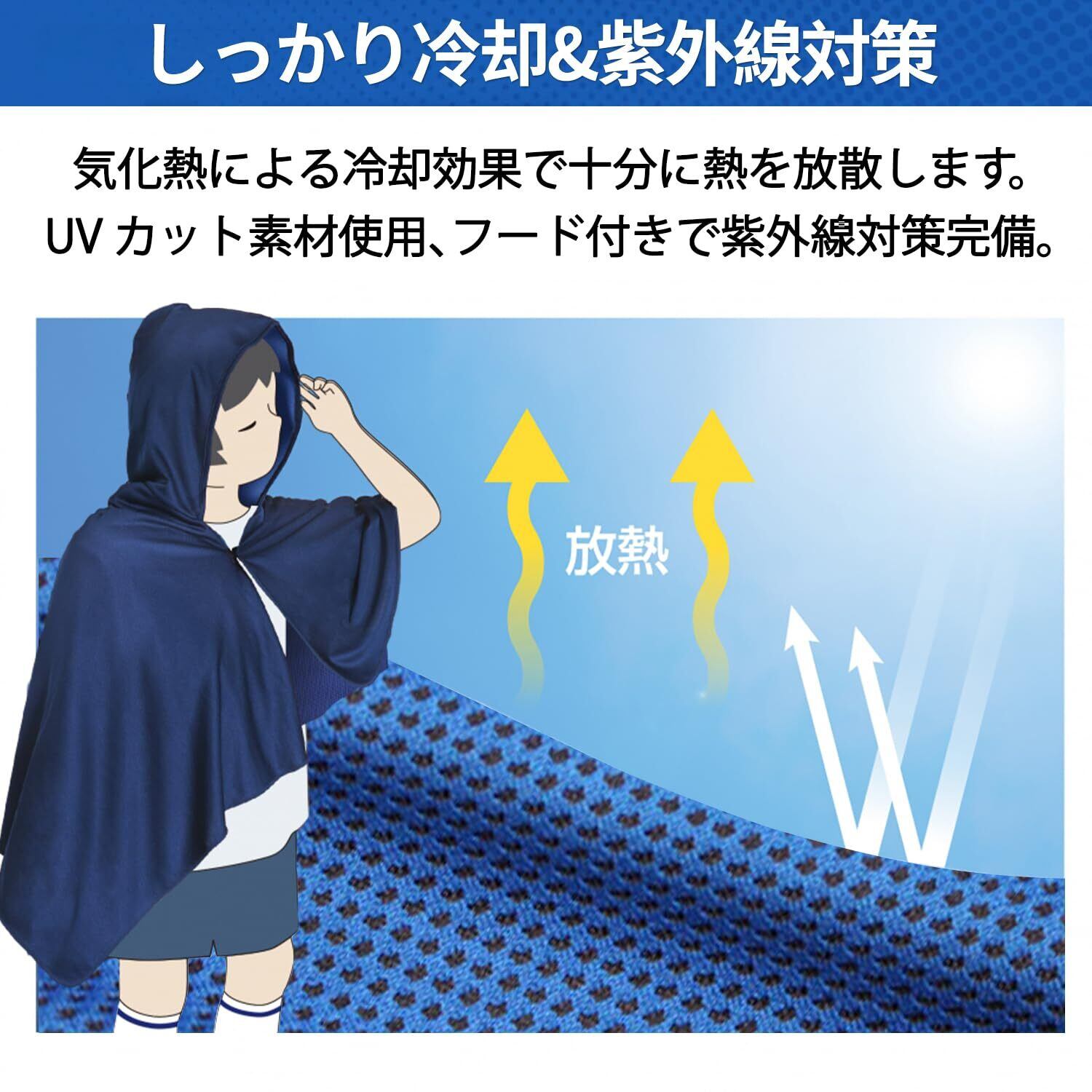 [SHICHANG] 肌温度-15℃の冷感ポンチョ 冷却 クールタオル 冷感タオル 冷感 れいかんグッズ クールケープ スポーツタオル 冷感 ポンチョ サッカー 熱中症対策 暑さ UV対策 スポーツ 日常生活 ネイビー