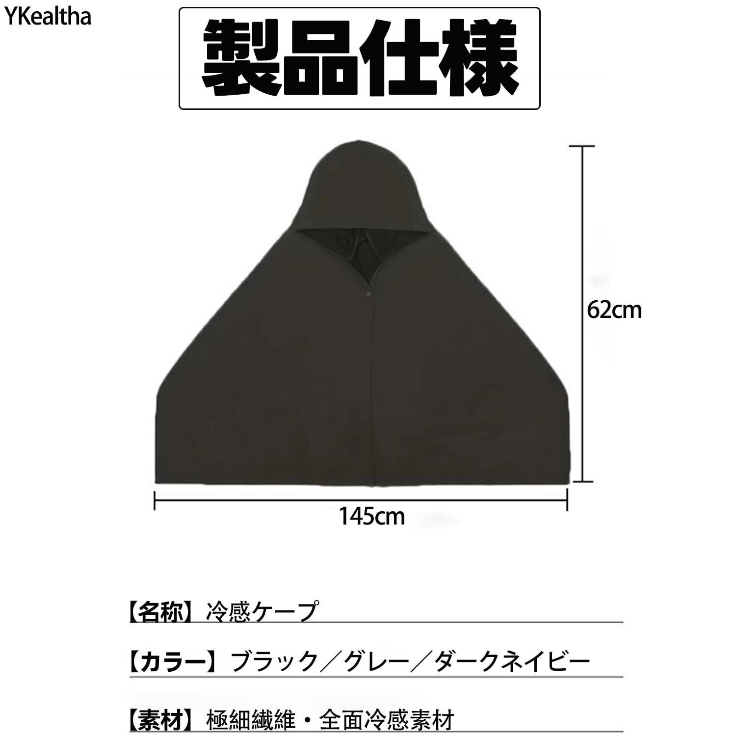 [YKealtha] 冷感ポンチョは、特に暑い夏に最適なアイテムです。日常生活やアウトドア活動時にも使いやすく、簡単に着脱可能なデザインが魅力です!熱中症対策としても大変おすすめです。