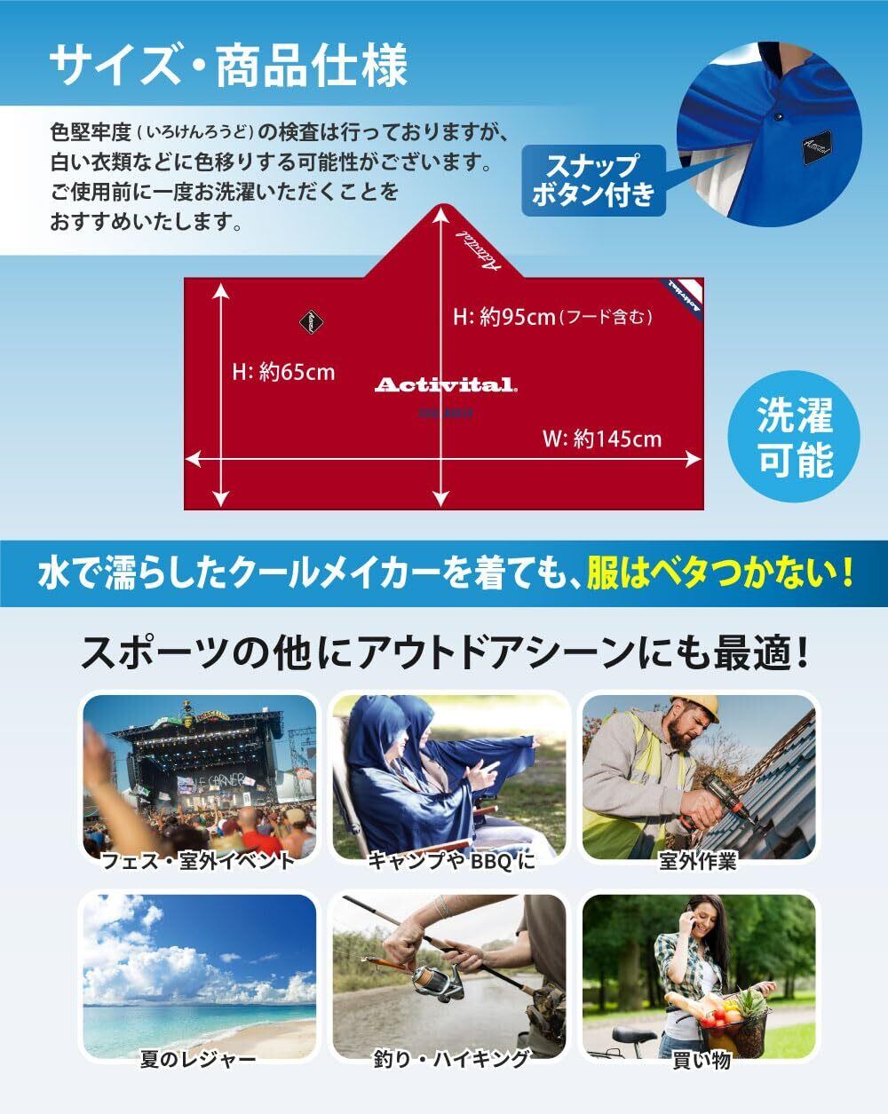 [Activital] のクールメイカー冷却タオルポンチョは、機能性とデザイン性を兼ね備えた夏の必需品!暑さ対策はもちろん、紫外線対策としても大活躍です。