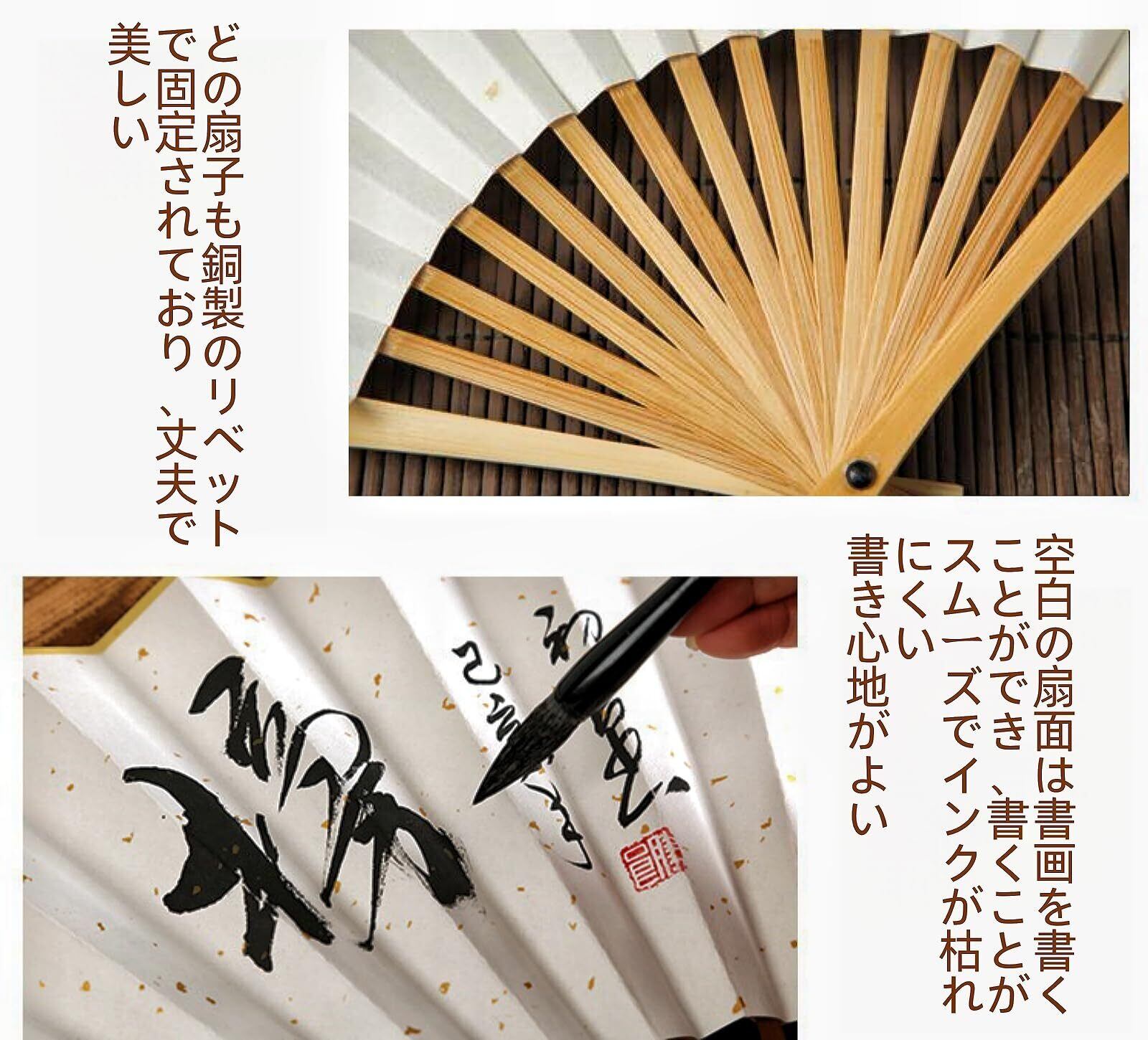 \【◆LAISIZHU 扇子 白 無地 慶弔用 竹骨 宣紙扇 扇面宣纸は書道や絵画ができます 26cm×1.8cm】/