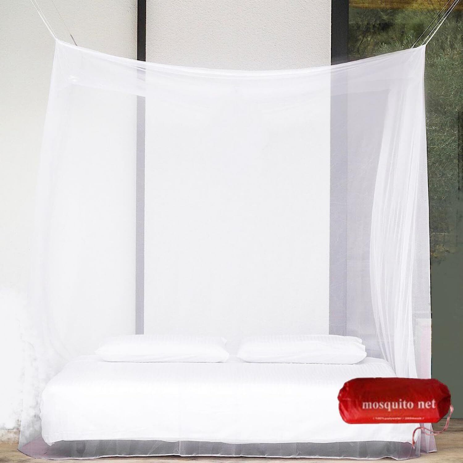 REMDY 蚊帳 モスキートネット 設置簡単 虫除け 室内 屋外 兼用 アウトドア キャンプ コンパクト 洗濯 収納袋付 200×200×180cm 出入口なし