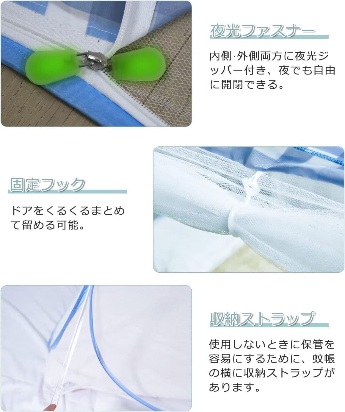 \【◆蚊帳 ワンタッチ 底付き 1ドア 蚊よけネット 虫 ムカデ対策 テント式かや 防護布付き チャック付き 折りたたみ式 網目は細かい 通気性よい 軽量 コンパクト 室内 アウトドア 旅行用 2段ベッド用 ブルー (セミダブル(約幅120x奥行き190x高さ130cm))】/