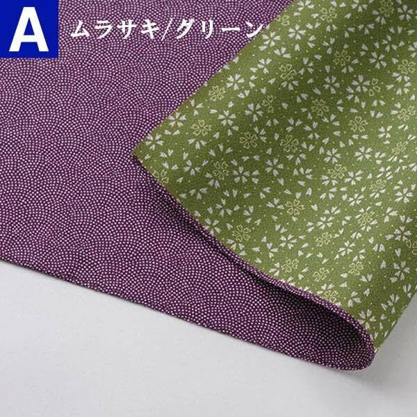 ふろしき 風呂敷 リバーシブル 90cm 大判 鮫小紋 桜 ちりめん 両面染め 二四巾 Lサイズ 四面縫製 お弁当包み ラッピング ギフト包み 瓶包み 着物お稽古バッグ クロス エコバッグ おしゃれ (ムラサキ/グリーン90センチ)