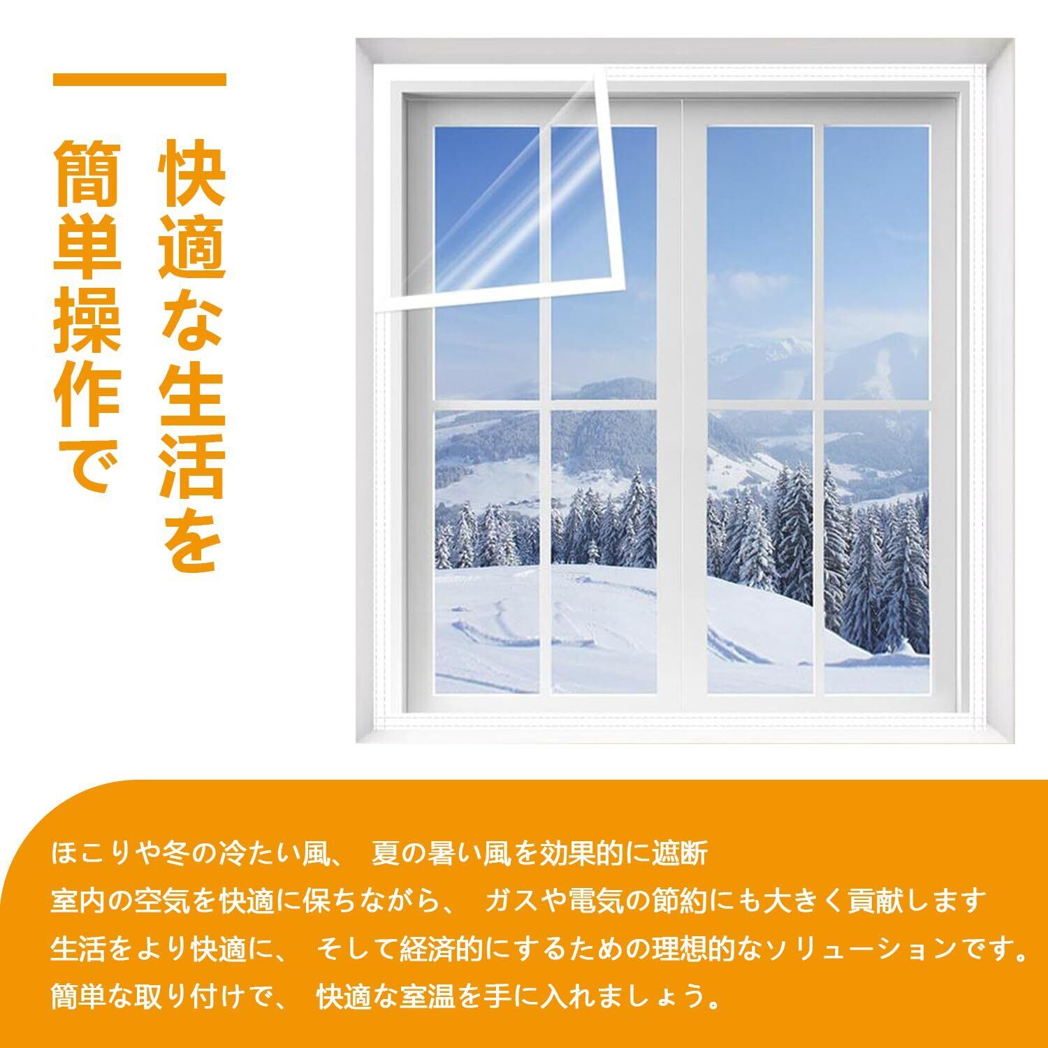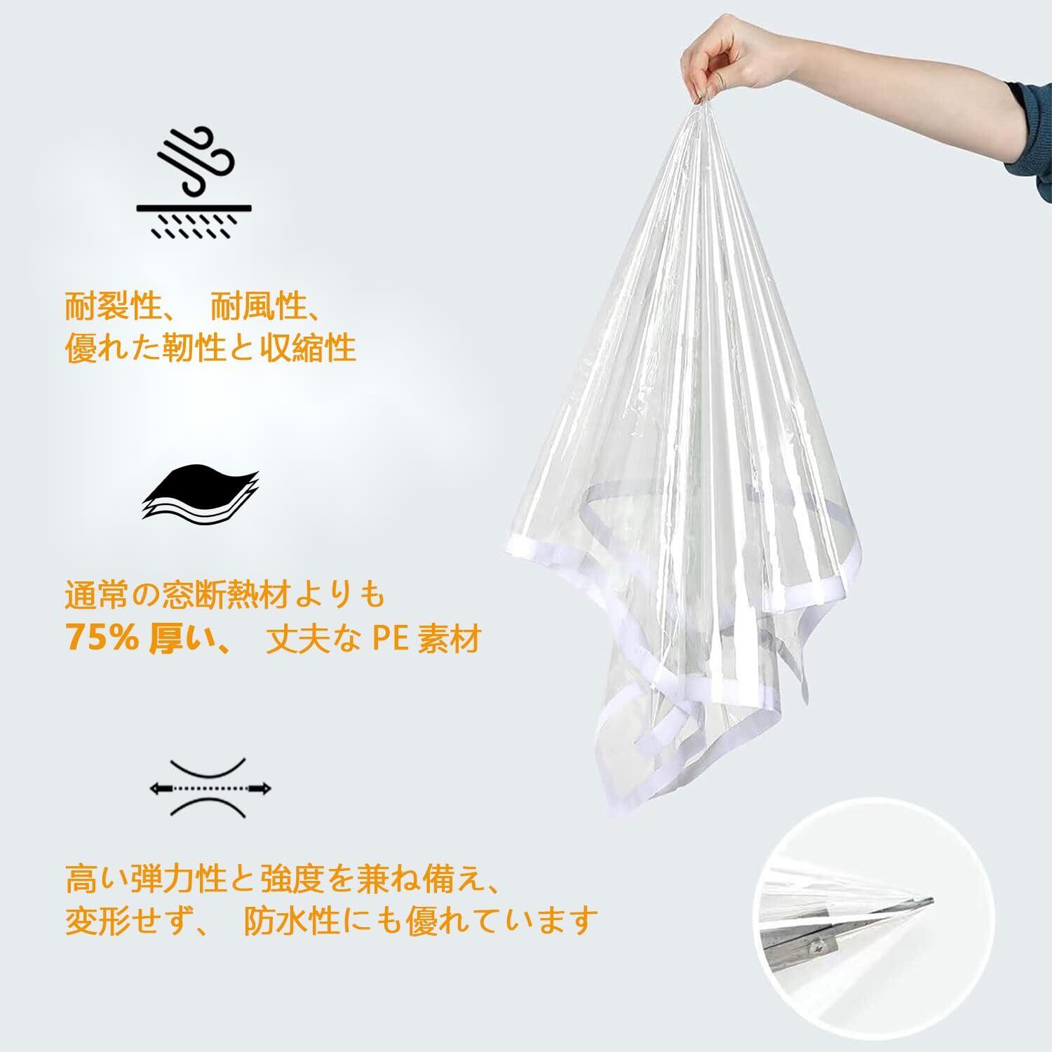 通常の窓断熱材よりも75%厚い、丈夫なPE素材で作られています。耐裂性、耐風性、優れた靭性と収縮性を持ち、高い弾力性と強度を兼ね備え、変形せず、防水性にも優れています。冬は暖かく、夏は涼しい室内環境を保ち、取り付け時のしわが少なく、熱収縮処理は必要ありません。