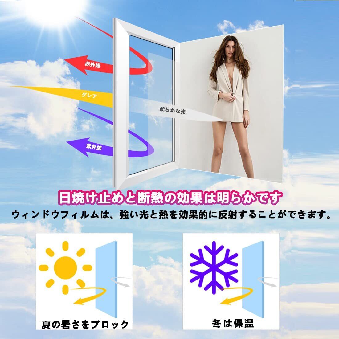 \【◆3つの実験検証 窓用フィルム 目隠しシート 断熱 遮光 UVカット 海 バルコニー 浴室窓用フィルム 外から見えない グラデーション ブラインド おしゃれ マジックミラー サンフィルム 建築用膜 ガラス飛散防止シート ガラス防爆フィルム 日よけ 防犯フィルム (シルバー 90*1000cm)】/