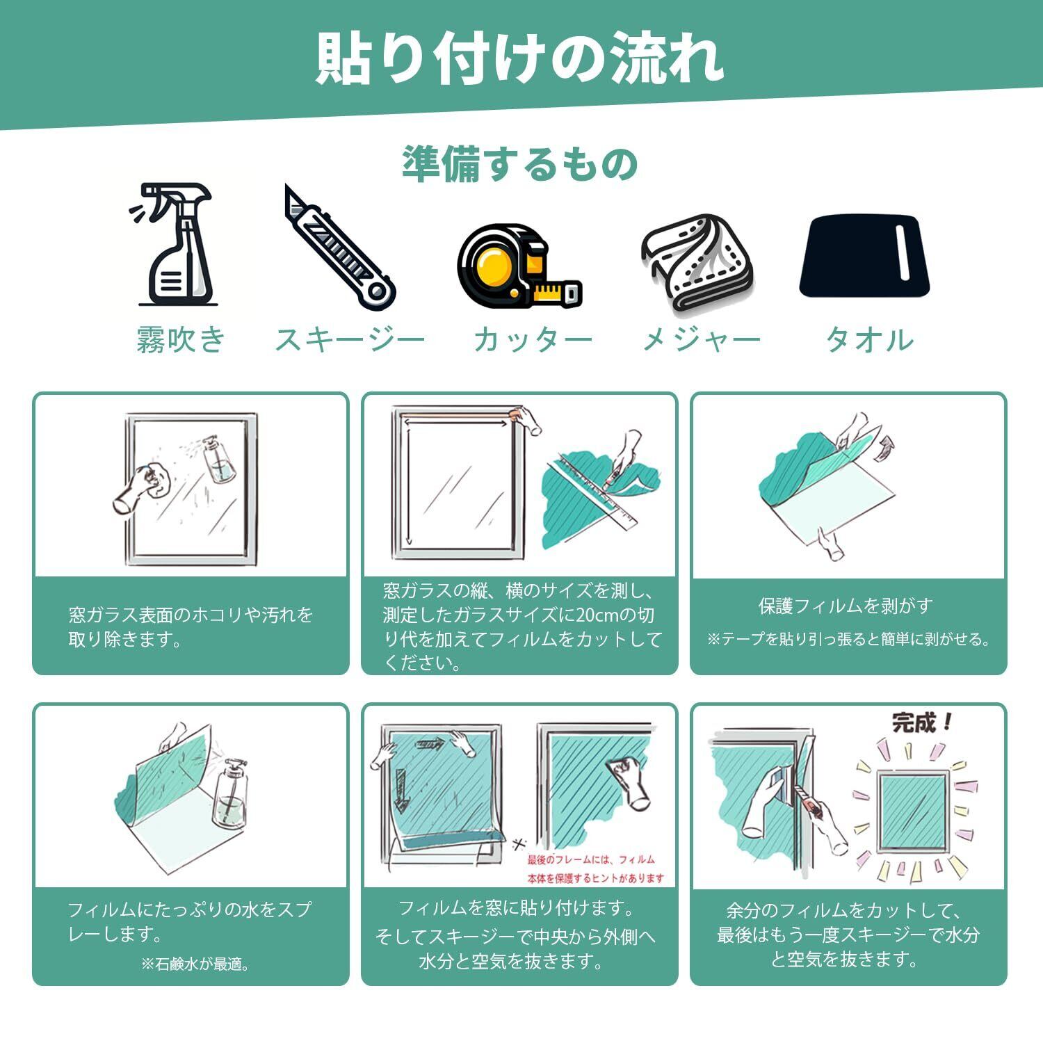 この窓ガラス目隠しフィルムは、**貼り付けるだけで簡単に設置可能です!わずか数分で窓にフィットし、遮光や断熱効果を発揮します。** 暖かい日差しをしっかりカットし、快適な居住環境を実現します。