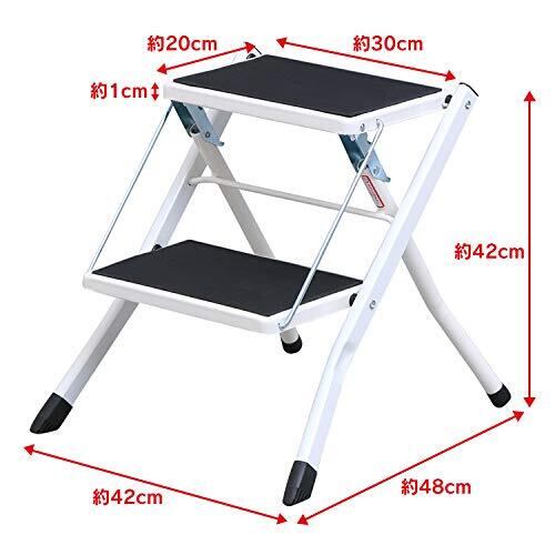 このアイリスプラザの踏み台は、**幅約42cm、奥行約48cm、高さ約42cmの絶妙なサイズ!** キッチンや洗面所など、様々な場所で活躍します。