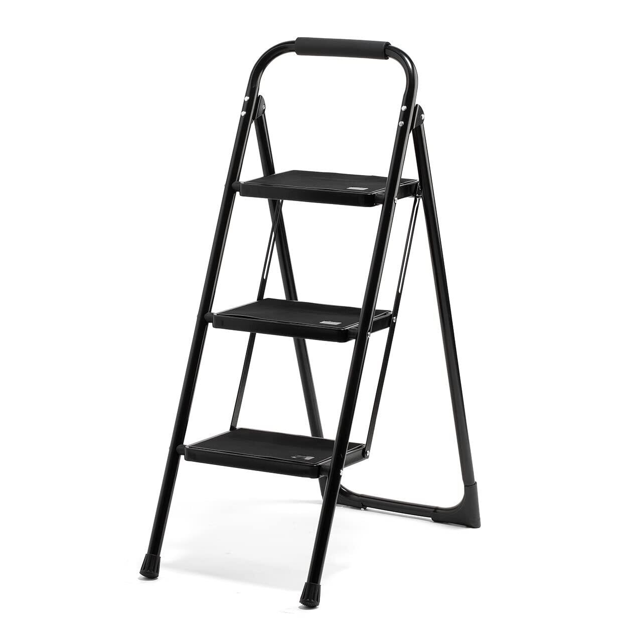 この脚立は、**3段の高い設計とスタイリッシュなブラックのデザインが特徴です!** 室内だけでなく、さまざまなシーンで活躍します。キッチンやリビングなど、必要な時にサッと使える便利なアイテムです。