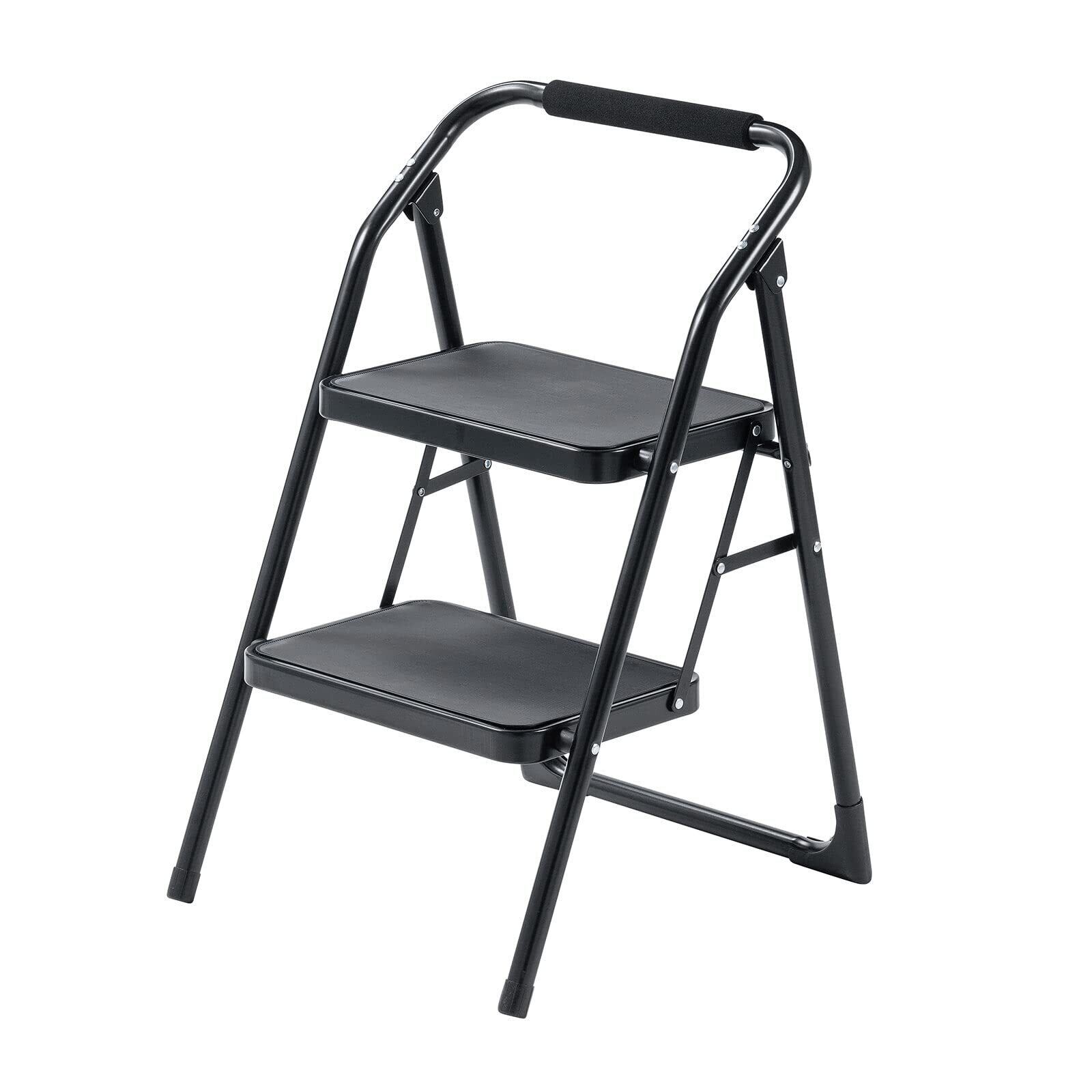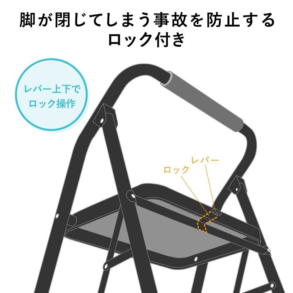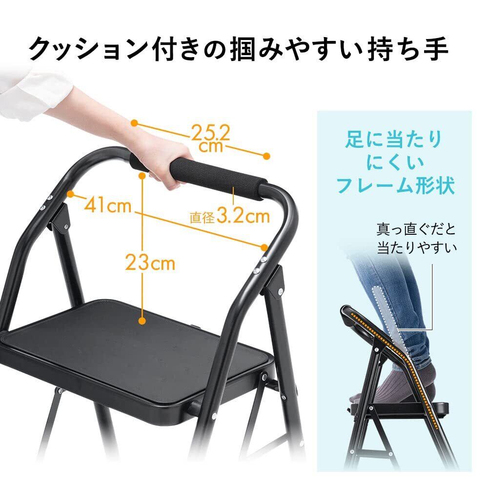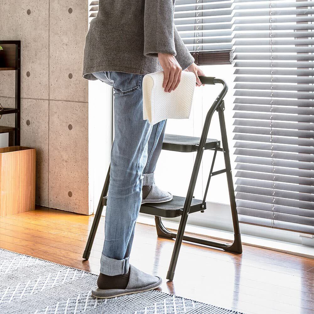 \【◆イーサプライ 脚立 折りたたみ 2段 踏み台 ステップスツール 持ち手付き 耐荷重150kg スチール製 重量4.7kg おしゃれ ブラック EEX-KYA15BK】/