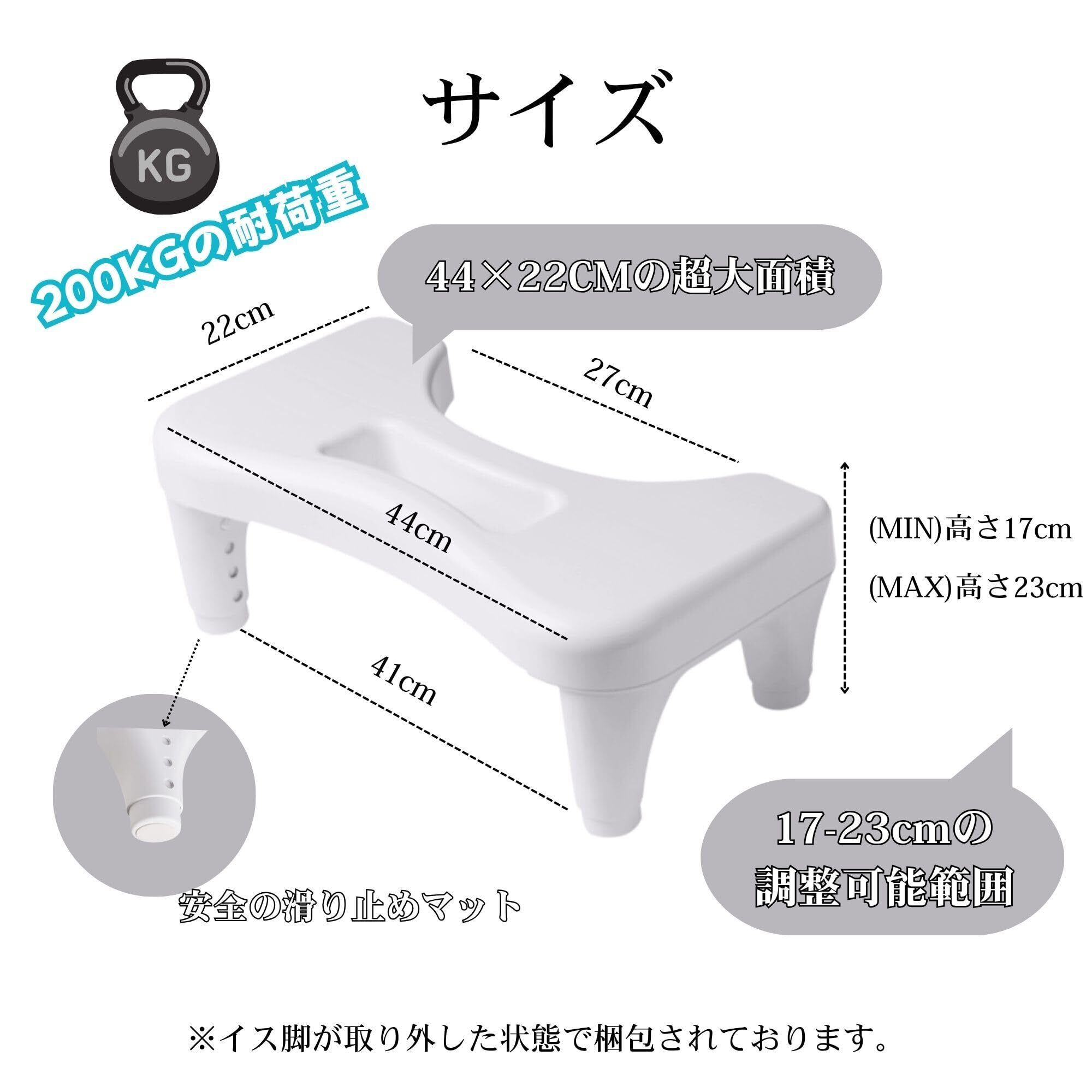 トイレ 踏み台 17–23 cm 高さ調整 4段階 調節 耐荷重200 kg トイトレ 子供〜大人 ポータブル・多機能 ステップスツール ホワイト