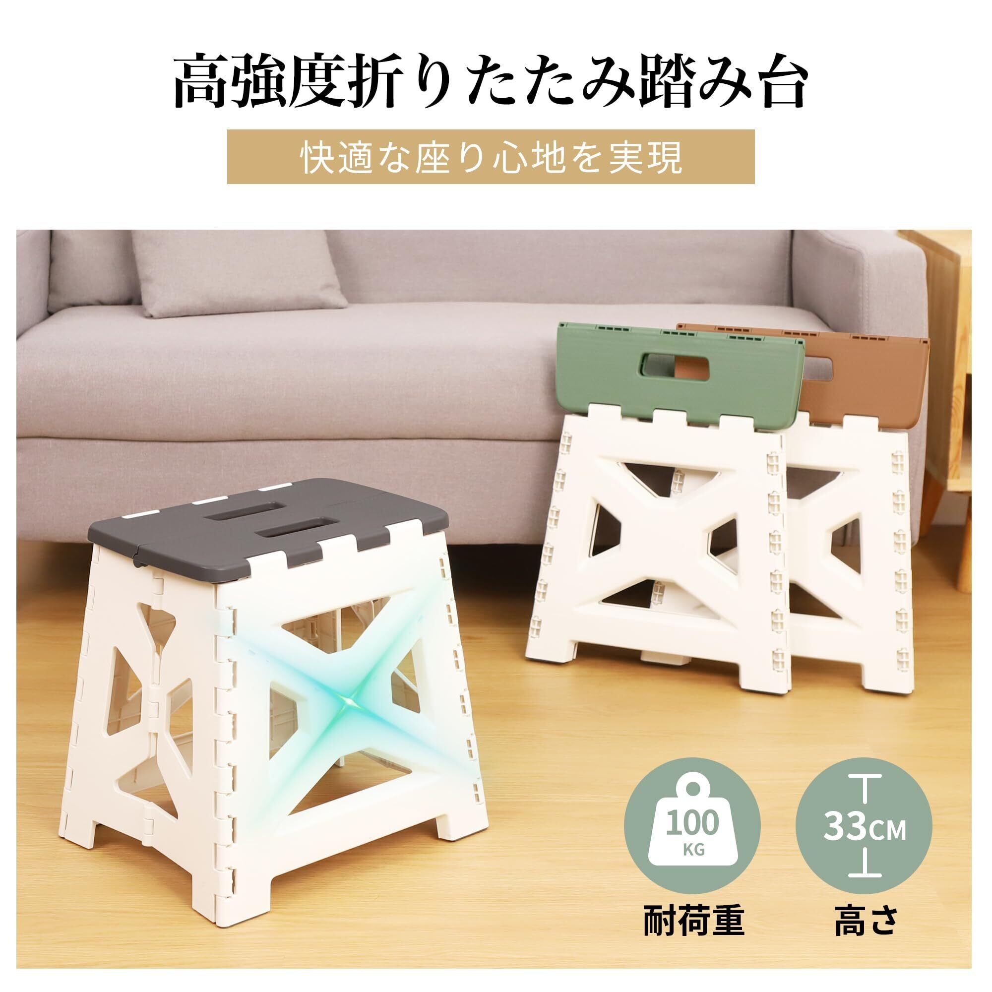 \【◆チチロバ(TITIROBA) 踏み台 折りたたみ スツール 耐荷重100kg 高さ33cm 洗車 脚立 ステップ 底面滑り止め拡大 軽量 コンパクト 室内 屋外 玄関 ブラウン】/