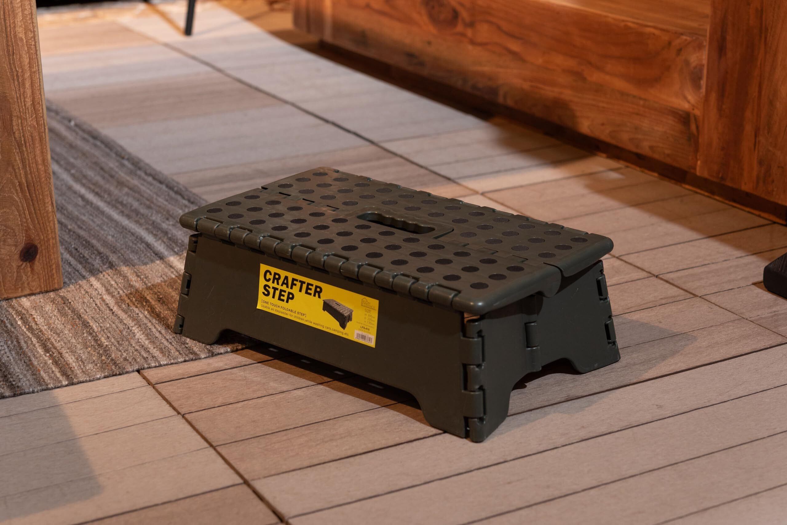 日常の様々なシーンで活用できるこのクラフターステップは、アウトドアだけでなく、家庭内での高い棚へのアクセス、